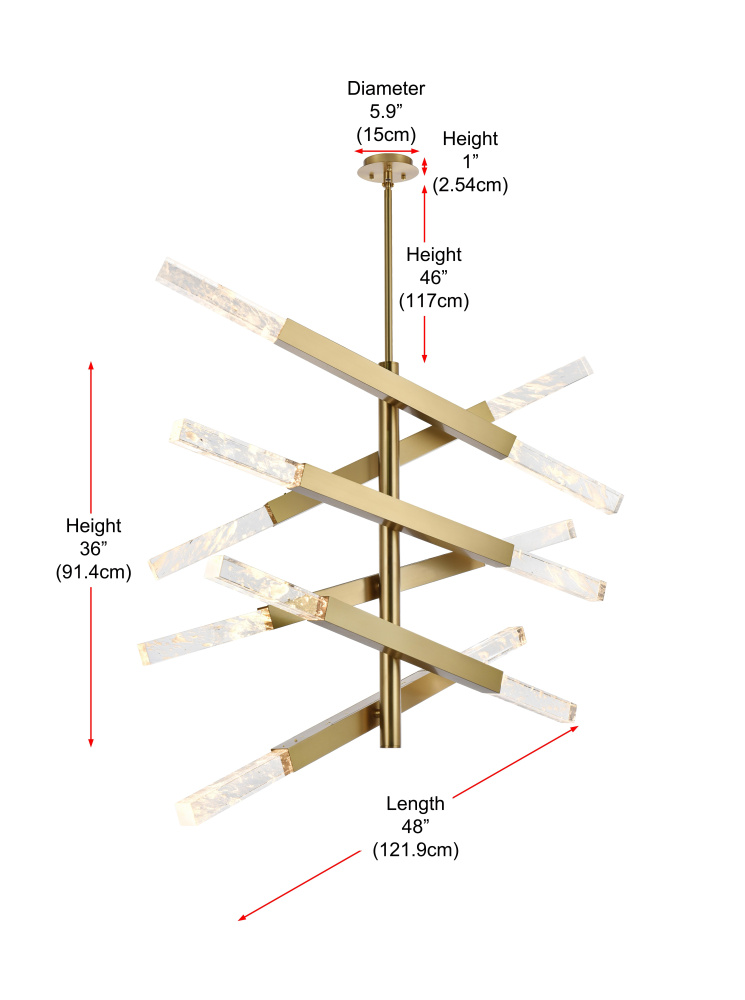 Go bold with the 6-bar pendant light, a true centerpiece of modern style and artistry. Featuring solid clear crystal bars with ethereal cloud-like details, this fixture refracts light into a dazzling show of brilliance, creating a dynamic interplay of form and illumination. Ethereal white clouds float gracefully within the crystal, each one a unique formation shaped over millennia. These wispy inclusions create a dreamlike landscape, evoking a sense of serenity and wonder. The six adjustable arms allow you to customize the angles, offering endless possibilities for creative configurations. Perfect for large spaces like grand dining rooms, open-plan living areas, or impressive office settings, the 6-bar design commands attention and elevates the ambiance. Dimmable 6.5W light bulbs (3000K, 480 lumens) are included, along with a matching canopy to complete the look.