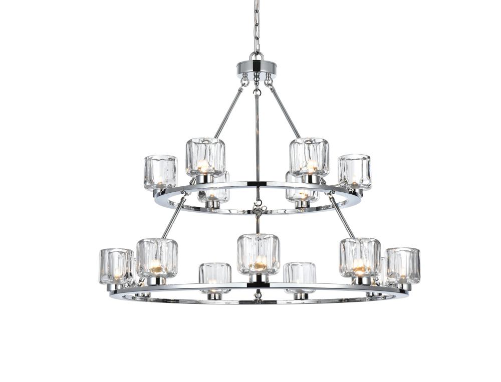 The 2-tier design creates a striking visual statement, offering layered lighting that balances beauty and functionality.
