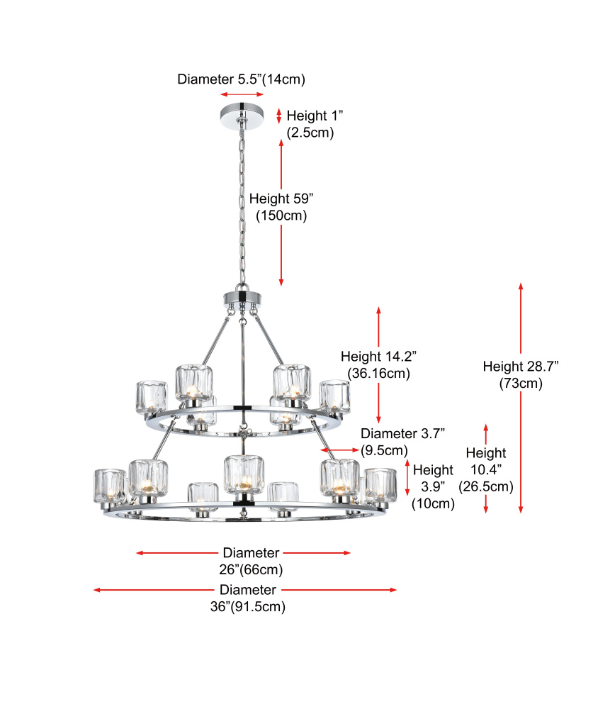 Pendant Light D36"+26" G9 Lt15 40W Chrome