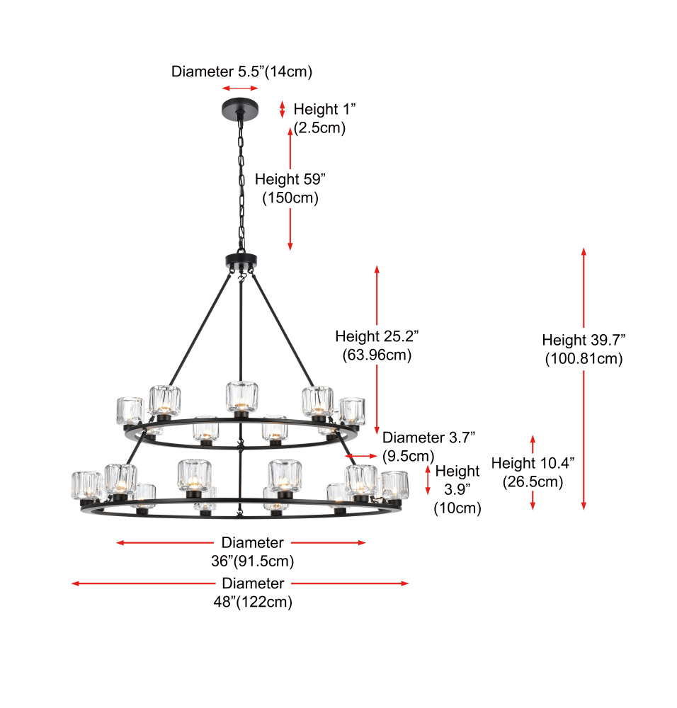 The 2-tier design creates a striking visual statement, offering layered lighting that balances beauty and functionality.