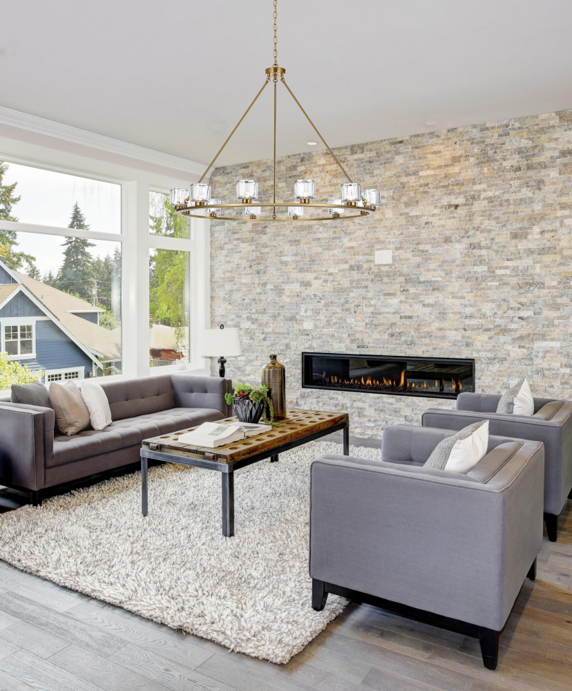 The chandelier’s round iron frame creates a sleek and cohesive design that brings modern geometry to your space