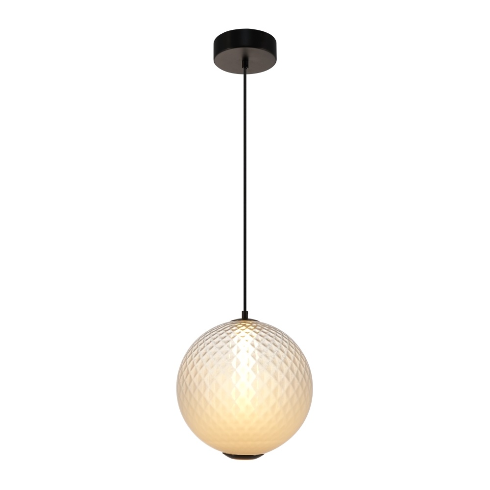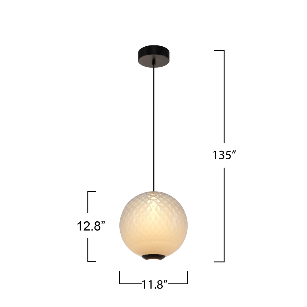 The LED pendant from the Celeste collection is a symphony of sophistication, featuring a mesmerizing diamond-patterned ombre white glass that gracefully encases an illuminated inner white tube. Its gunmetal-finished metalwork adds a rich, modern allure, making it a standout centerpiece for any room. A clever peek-hole design at the bottom casts a focused beam of light downward, while the ambient glow from the sides creates a warm and inviting atmosphere. This elegant fixture is a harmonious blend of form and function, perfect for elevating your space with timeless charm. The textile wire cover is designed for elegance and ease height adjustment.