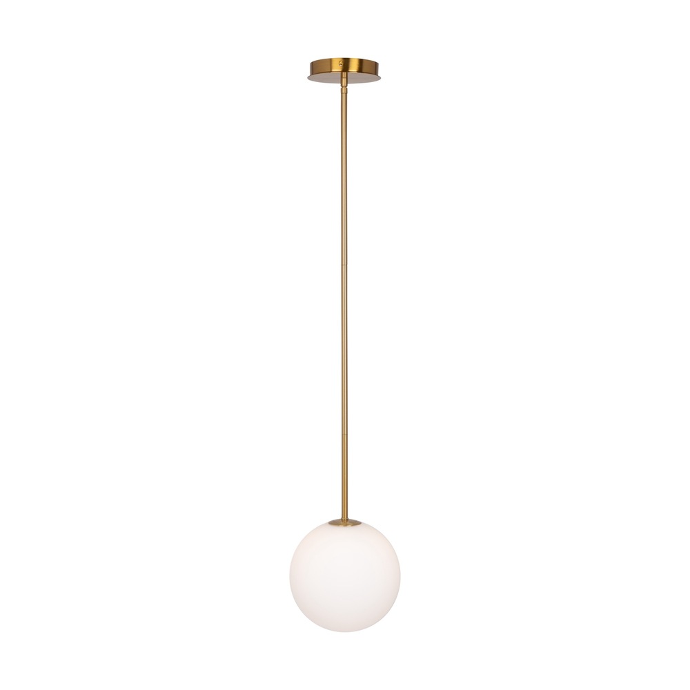 The Aurelia Collection is defined by its contemporary allure, featuring a warm brushed brass frame. Each arm of the chandelier is adorned with beautiful spherical white glassware, creating a visually striking contrast and emitting a soft, inviting illumination. This collection seamlessly marries sleek design with a warm aesthetic, making it a stylish and captivating addition to any space. Single light pendant shown (height adjustable via extra rods included)