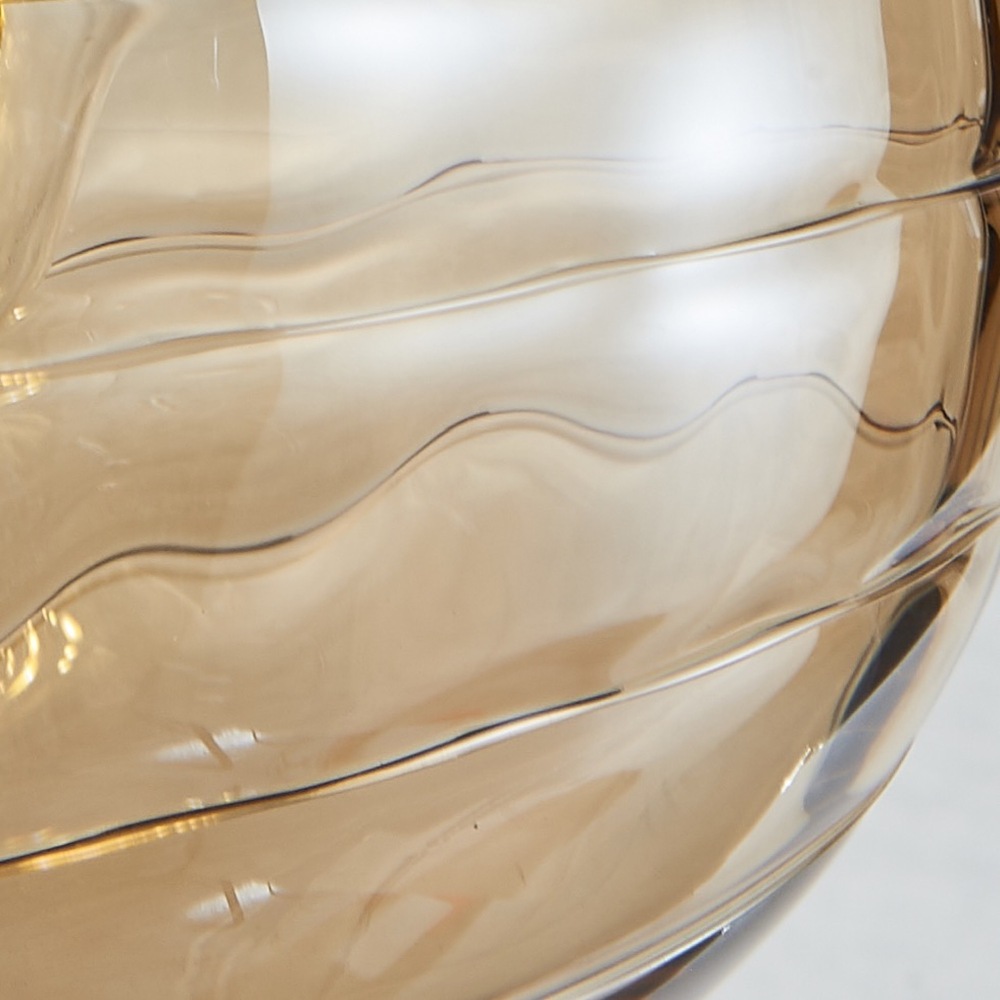 The Gem Collection with champagne glassware has a rich, translucent amber hue with a high level of clarity, allowing light to pass through while casting a warm, golden tone. The model shown is a single height adjustable pendant.