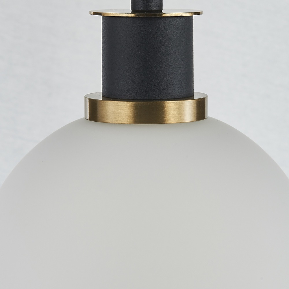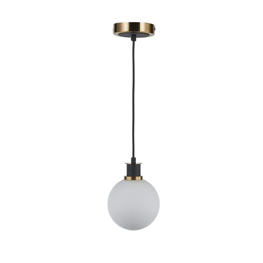 The Gem collection with acid white glass, also known as etched glass, is a type of glass that has undergone a process to give it a rich cloudy white appearance. When illuminated this glassware has a warm hue, which compliments its two-tone black and brushed brass framing. The model shown is a single lite pendant that is height adjustable.