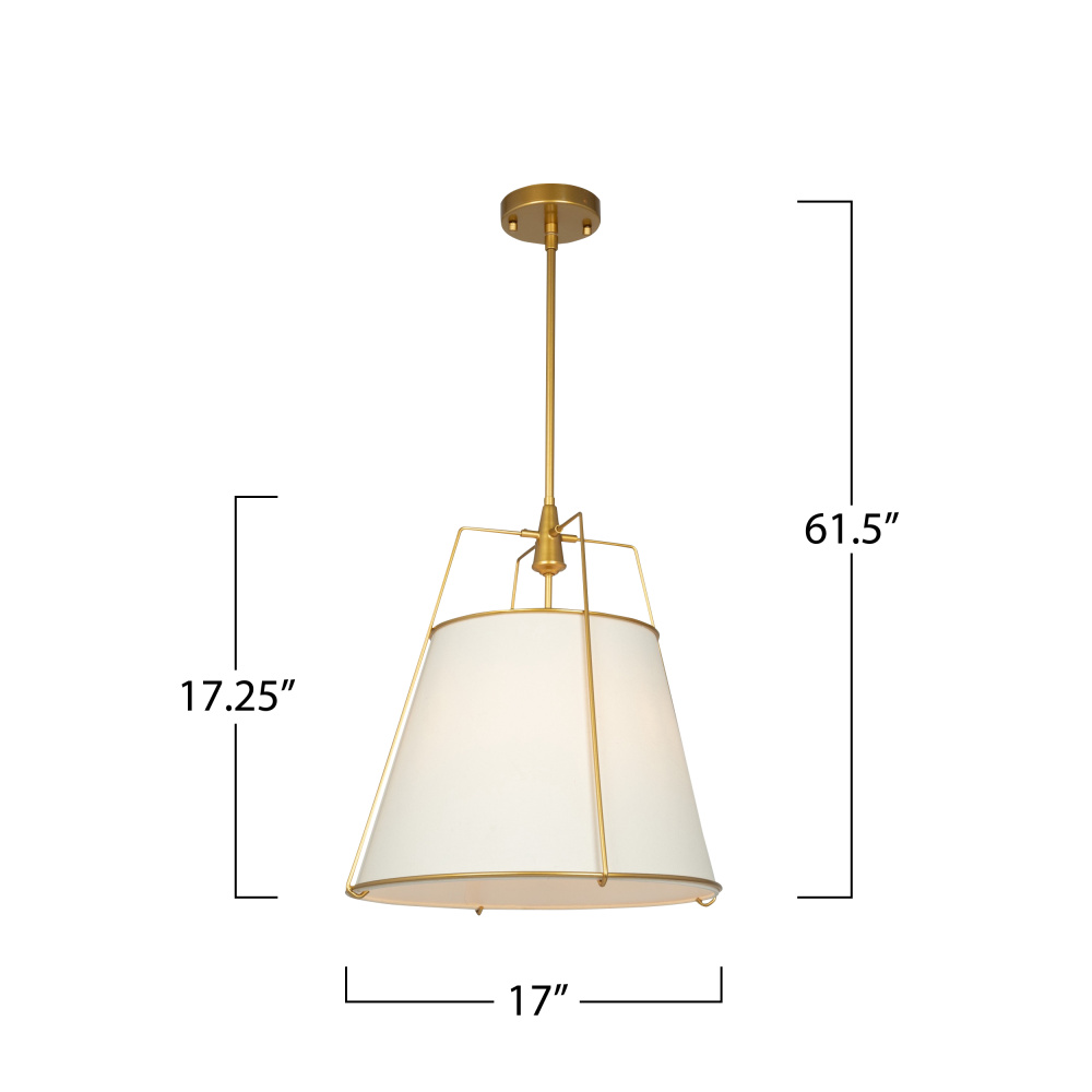 Designed by Steven Sabados (S&C), the Pullman Collection of linen shades is elegantly suspended by brass metal frames, seamlessly combining classic and modern design elements. The high-quality linen shades, gently tapered and expertly crafted, diffuse light to create a warm and inviting ambiance. With their timeless elegance and versatile aesthetics, these shades add a touch of sophistication to any space they grace. The model shown is a 3 lite 17" diameter pendant chandelier. (also available with black metalwork)