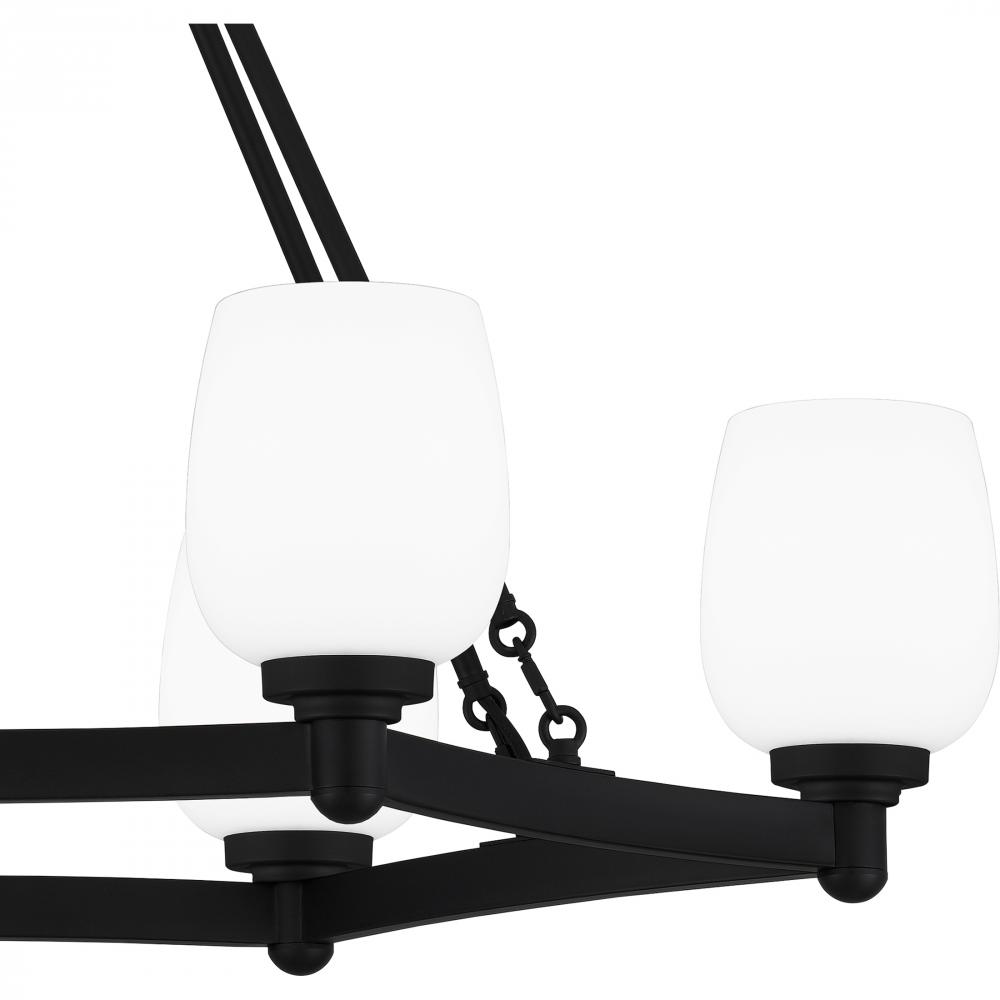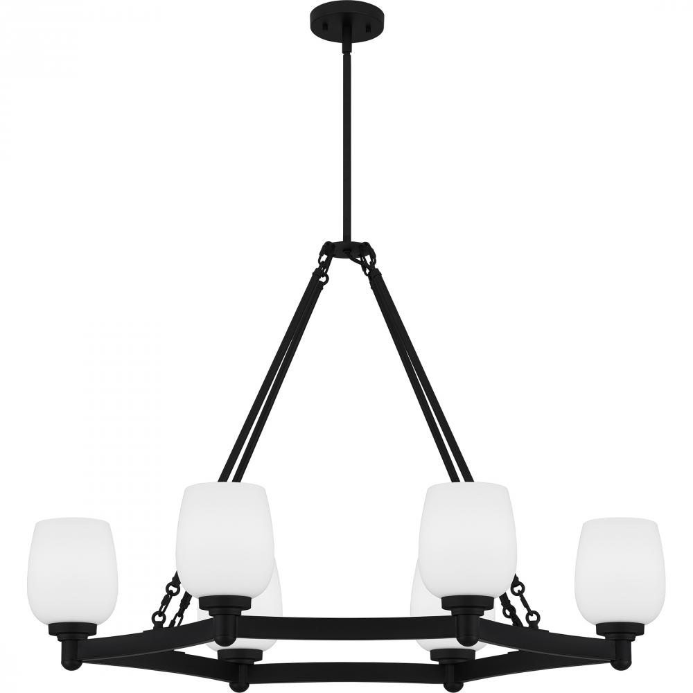 A fresh interpretation of the classic wagon wheel silhouette, Penning features opal etched glass shades that softly cast light. Whether in brushed nickel or matte black, the Penning chandelier delivers on updated traditional style. Hang this chandelier or