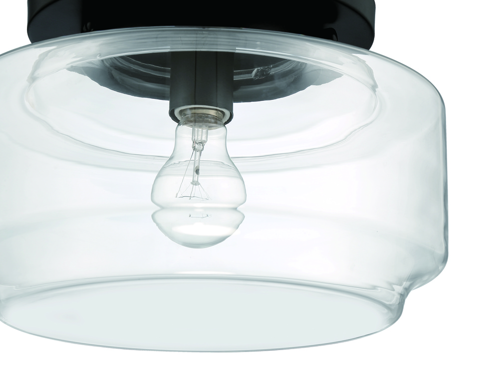 The Peri Collection by Craftmade, inspired by classic schoolhouse lights, features a wide clear glass globe in a familiar yet updated shape. Finished in your choice of brushed polished nickel, flat black or satin brass, these flushmounts are available in 12" and 14" diameter and each uses a single 60W medium base bulb.