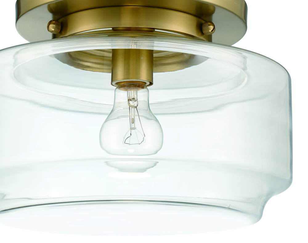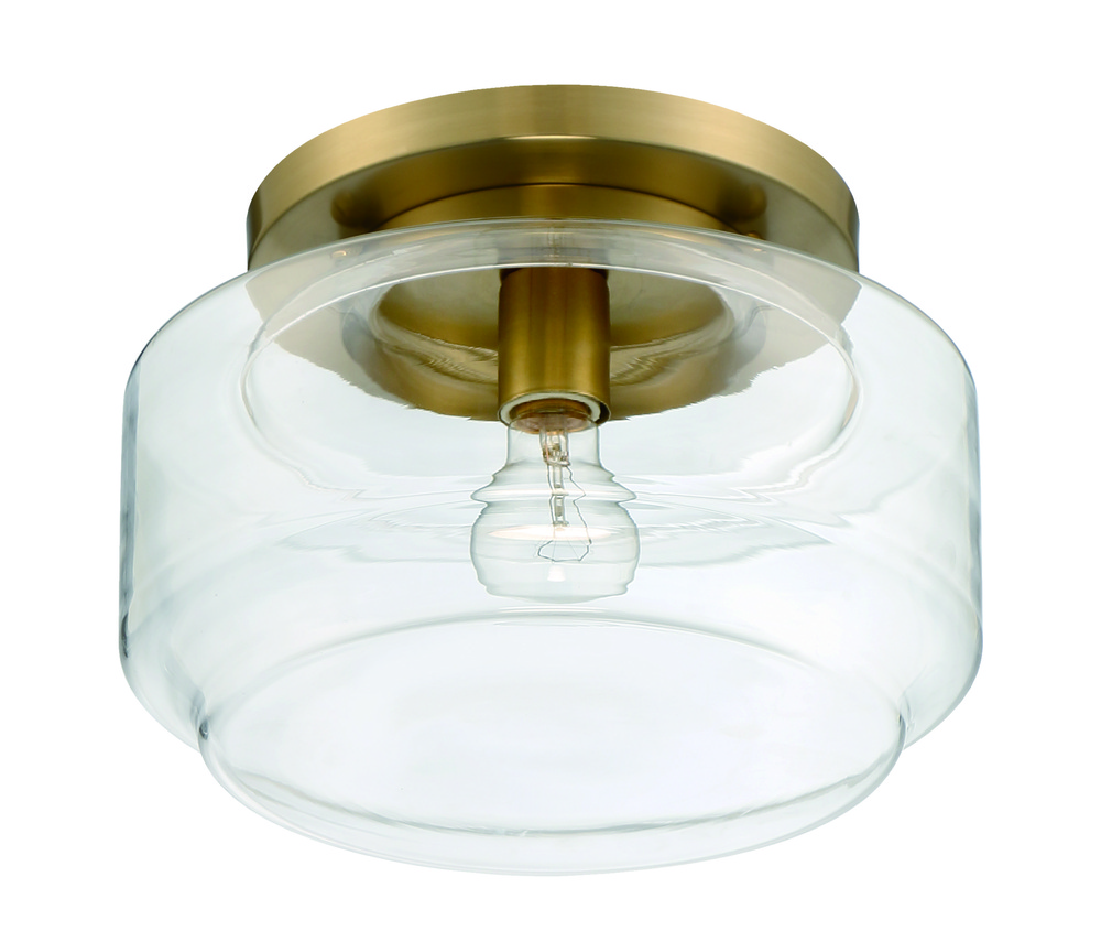 The Peri Collection by Craftmade, inspired by classic schoolhouse lights, features a wide clear glass globe in a familiar yet updated shape. Finished in your choice of brushed polished nickel, flat black or satin brass, these flushmounts are available in 12" and 14" diameter and each uses a single 60W medium base bulb.