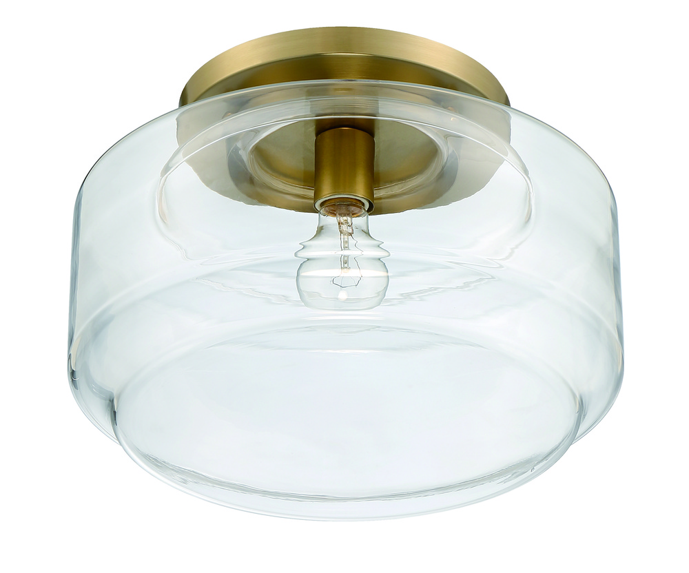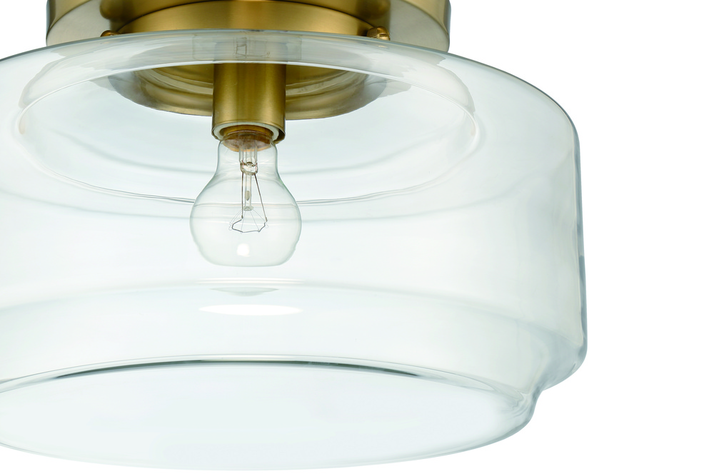The Peri Collection by Craftmade, inspired by classic schoolhouse lights, features a wide clear glass globe in a familiar yet updated shape. Finished in your choice of brushed polished nickel, flat black or satin brass, these flushmounts are available in 12" and 14" diameter and each uses a single 60W medium base bulb.