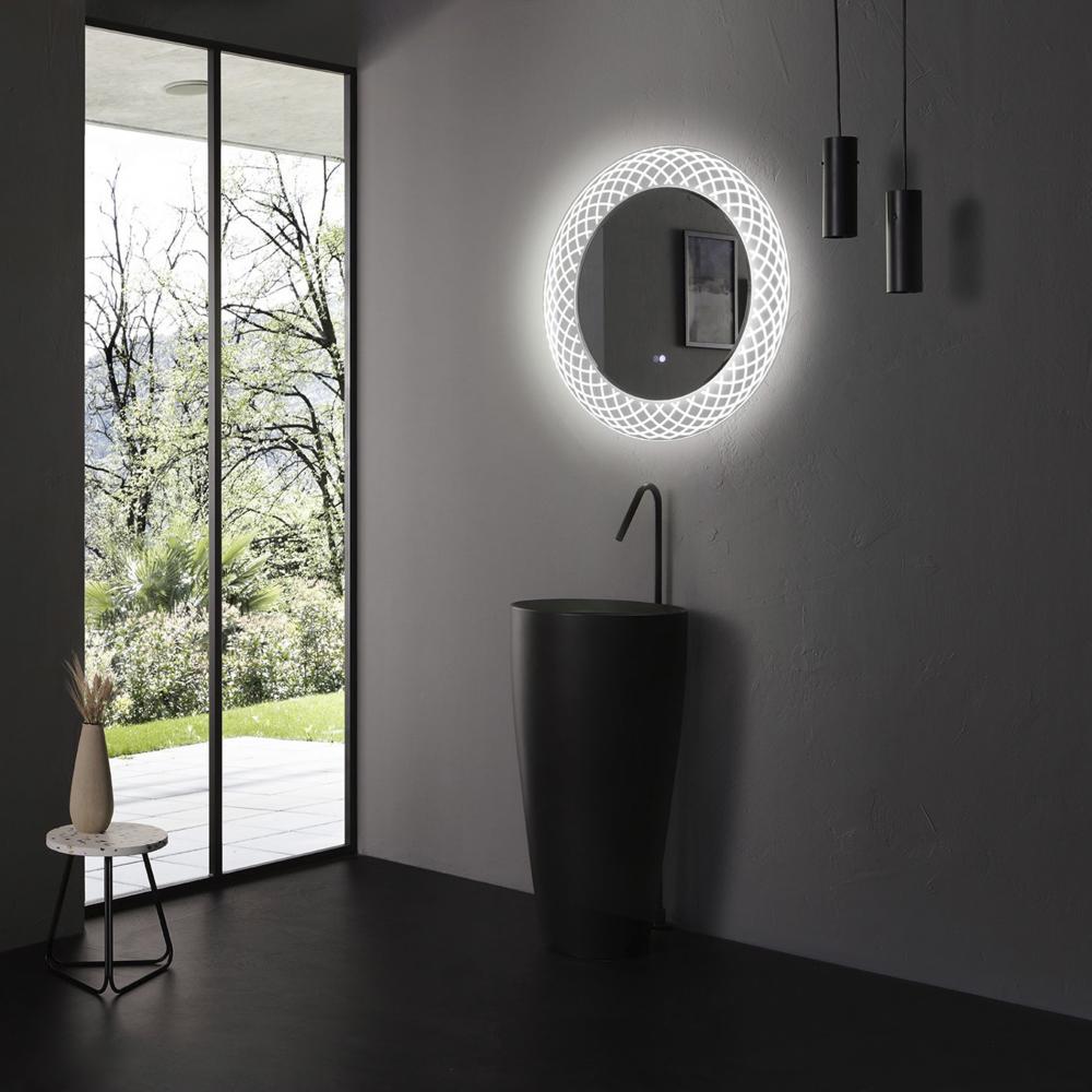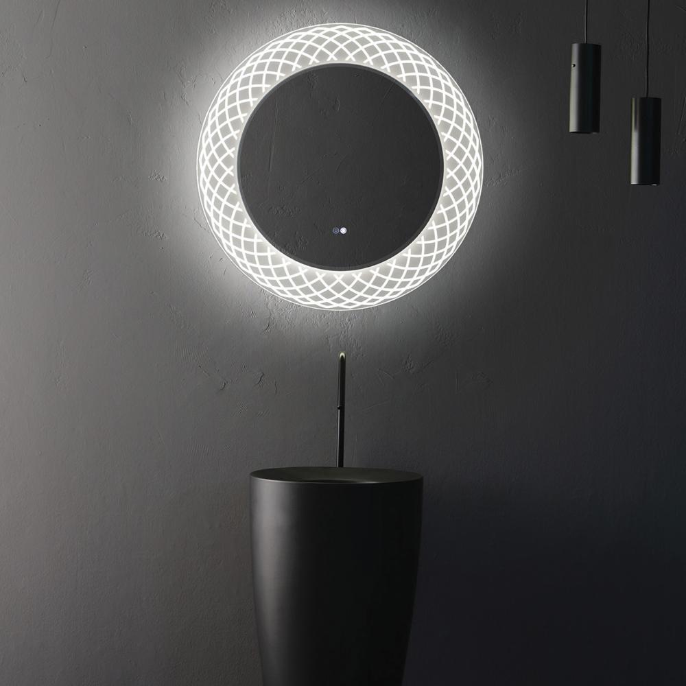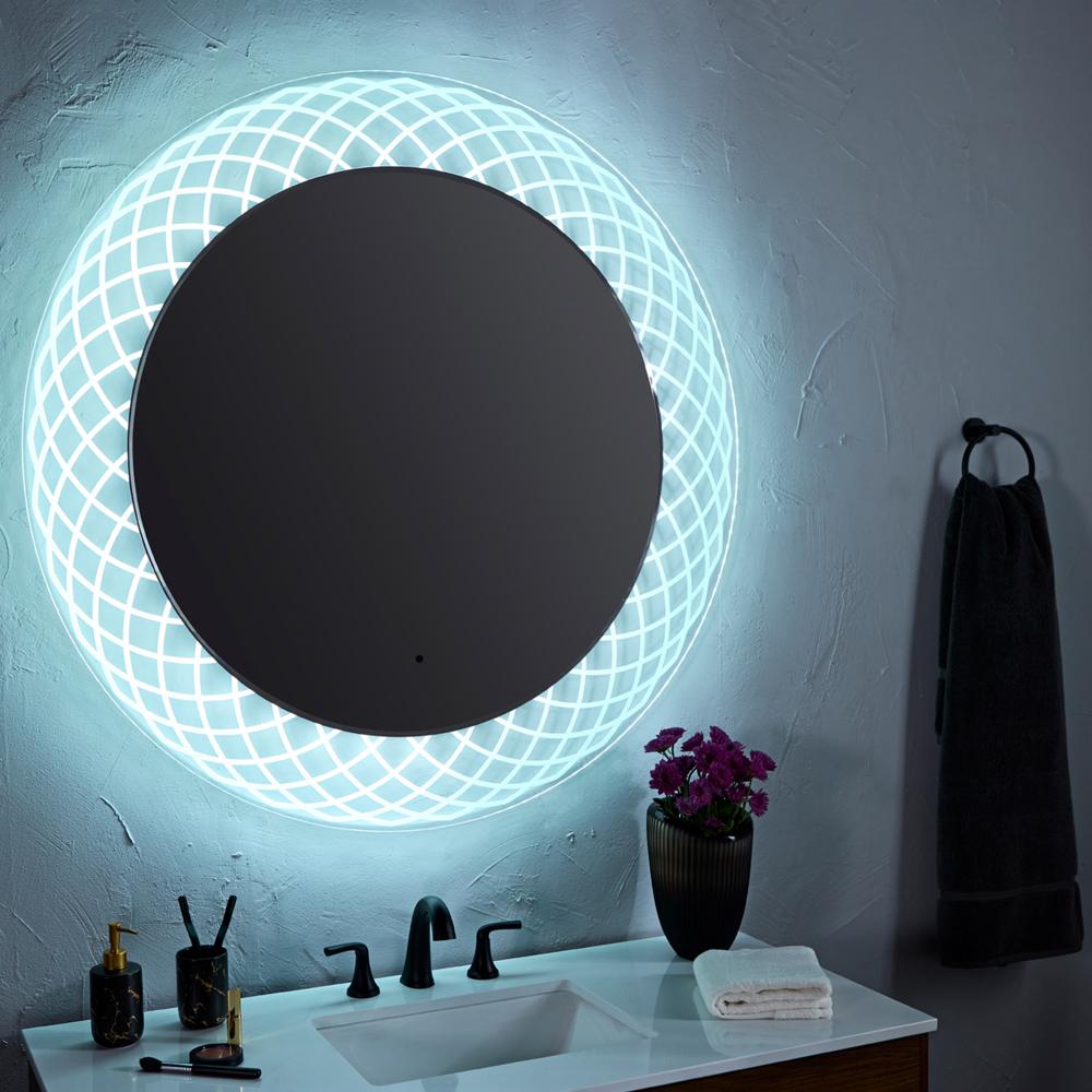 Classic Beveled Edge Mirror Encircled By An Etched Glass Frame