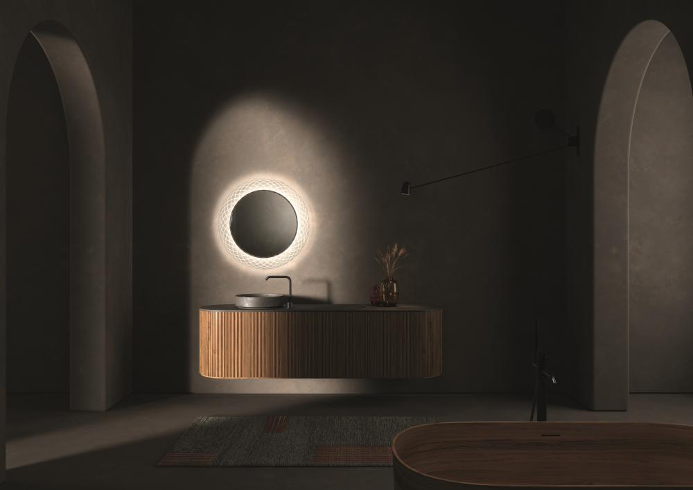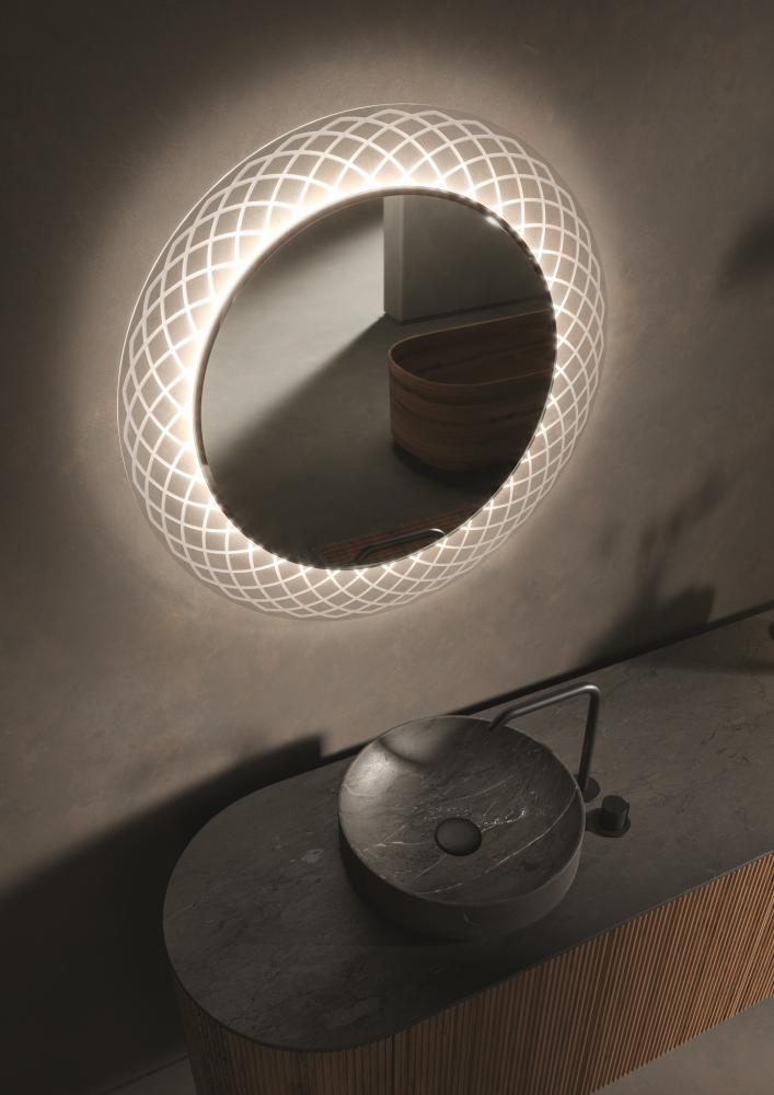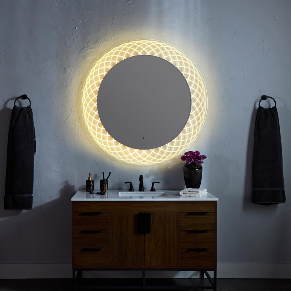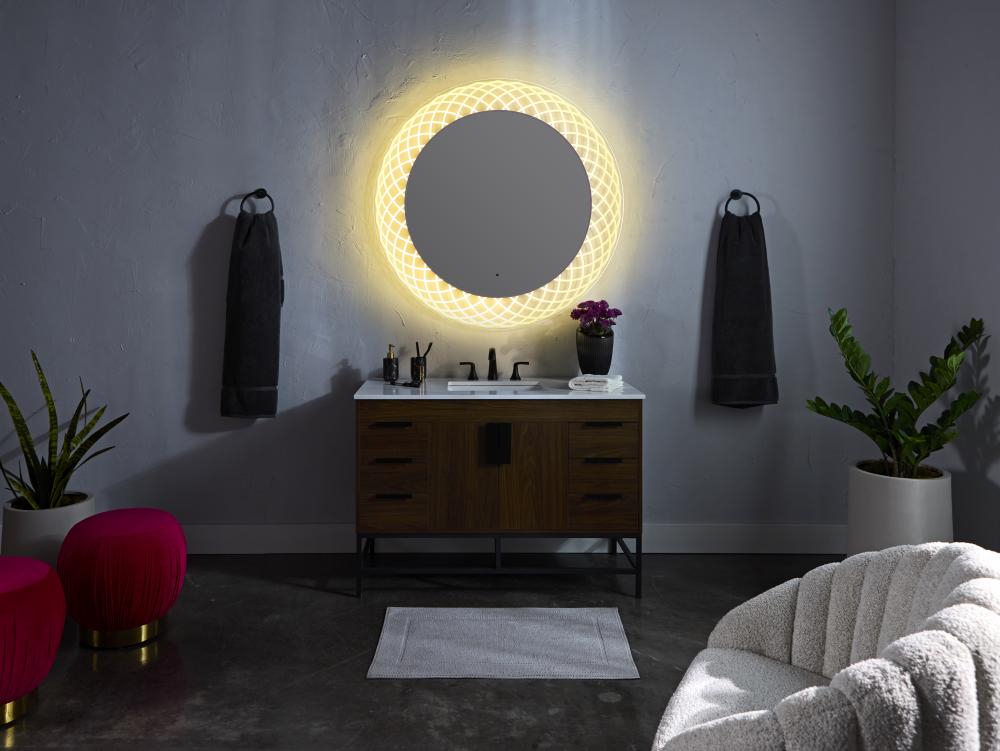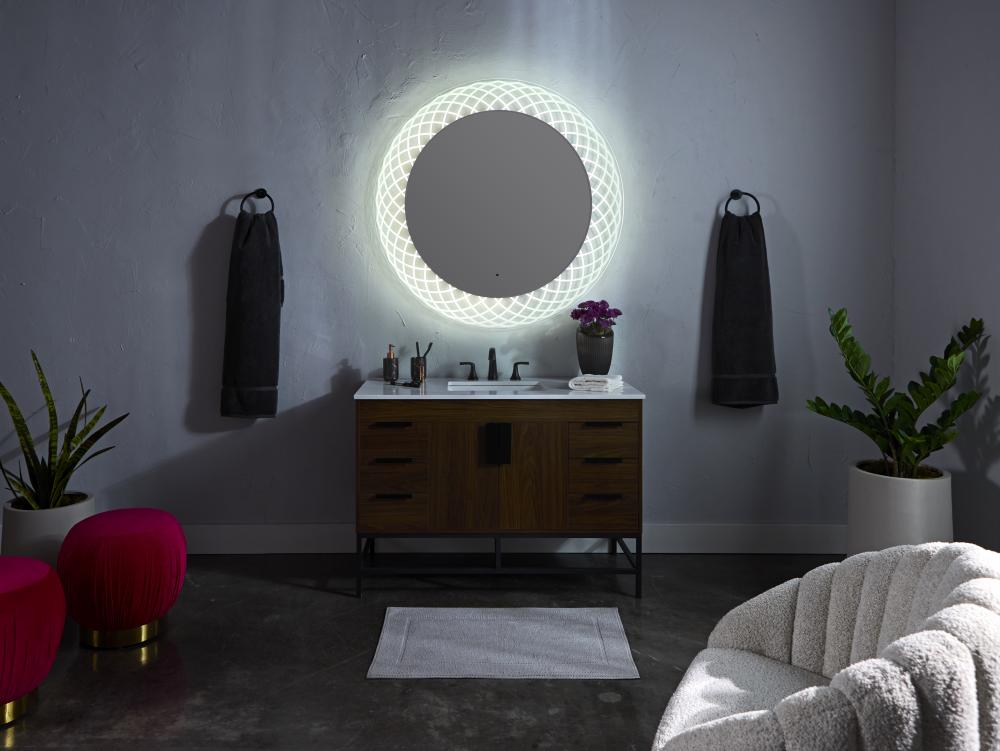 Classic Beveled Edge Mirror Encircled By An Etched Glass Frame