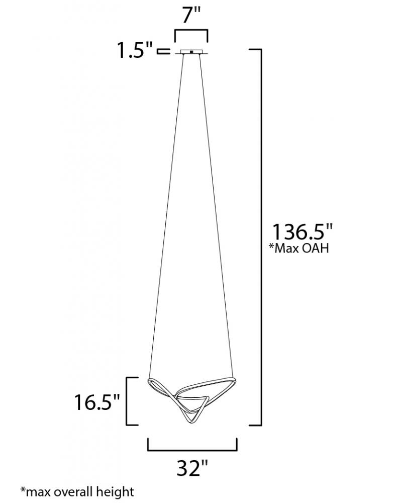 Sweeping lines curve and curl in a continuous motion, finished in a rich Brushed Champagne or Black Chrome. Not just a lighting fixture but a sculptural work of art. Gentle illumination moves in all directions for a dramatic lighting effect.