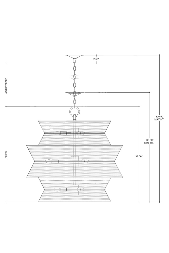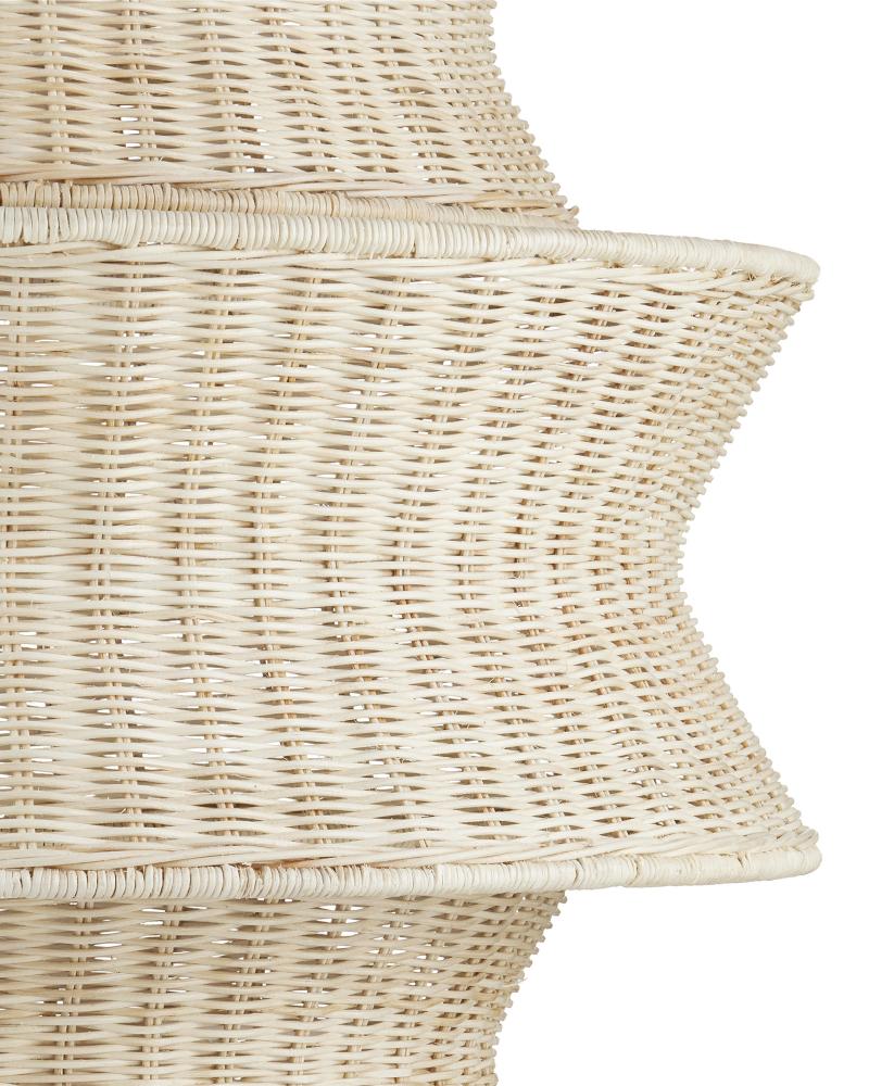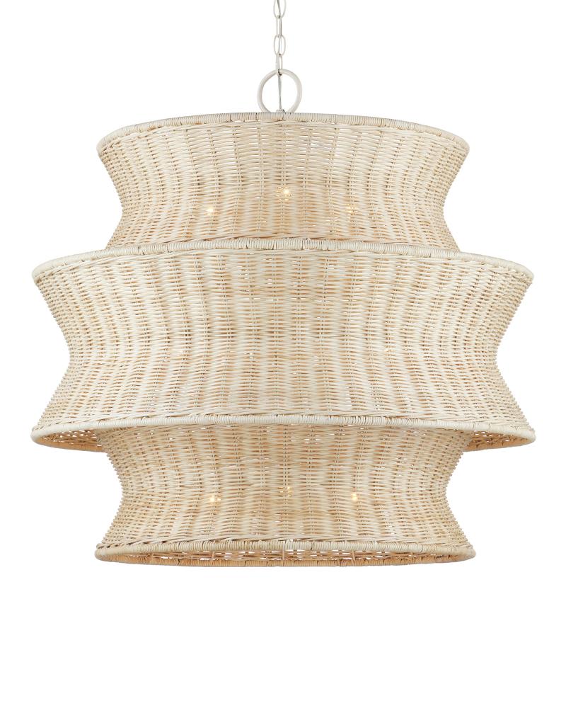 The Phebe Medium Chandelier is a dynamic design that showcases the talents of our weavers and the beauty of natural materials. The three-tier white chandelier has such a cohesive appearance because the circular wire frames are wrapped in the same material, then the entire fixture has been bleached. The vanilla finish of the hardware keeps the design light and airy. This piece was inspired by a natural material story. Adjustable from 38.5" to 106.5" with use of included chain/rod kit/cable. If your space calls for a longer drop, additional chain/rods/cable is available for purchase.