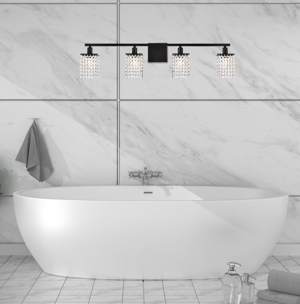 The Phineas Collection of lights always exude elegance and sparkling beauty--and why wouldn't it, with its beautiful curtain of clear crystal strands that shimmer with each passing second as light passes through? Available in a stunning black finish, not only will your home be illuminated, your guests will be charmed and in awe of the dancing crystal lights, and you will be pleased with how this wall lamp can elevate any room into a luxurious and glamourous world (light bulbs not included).