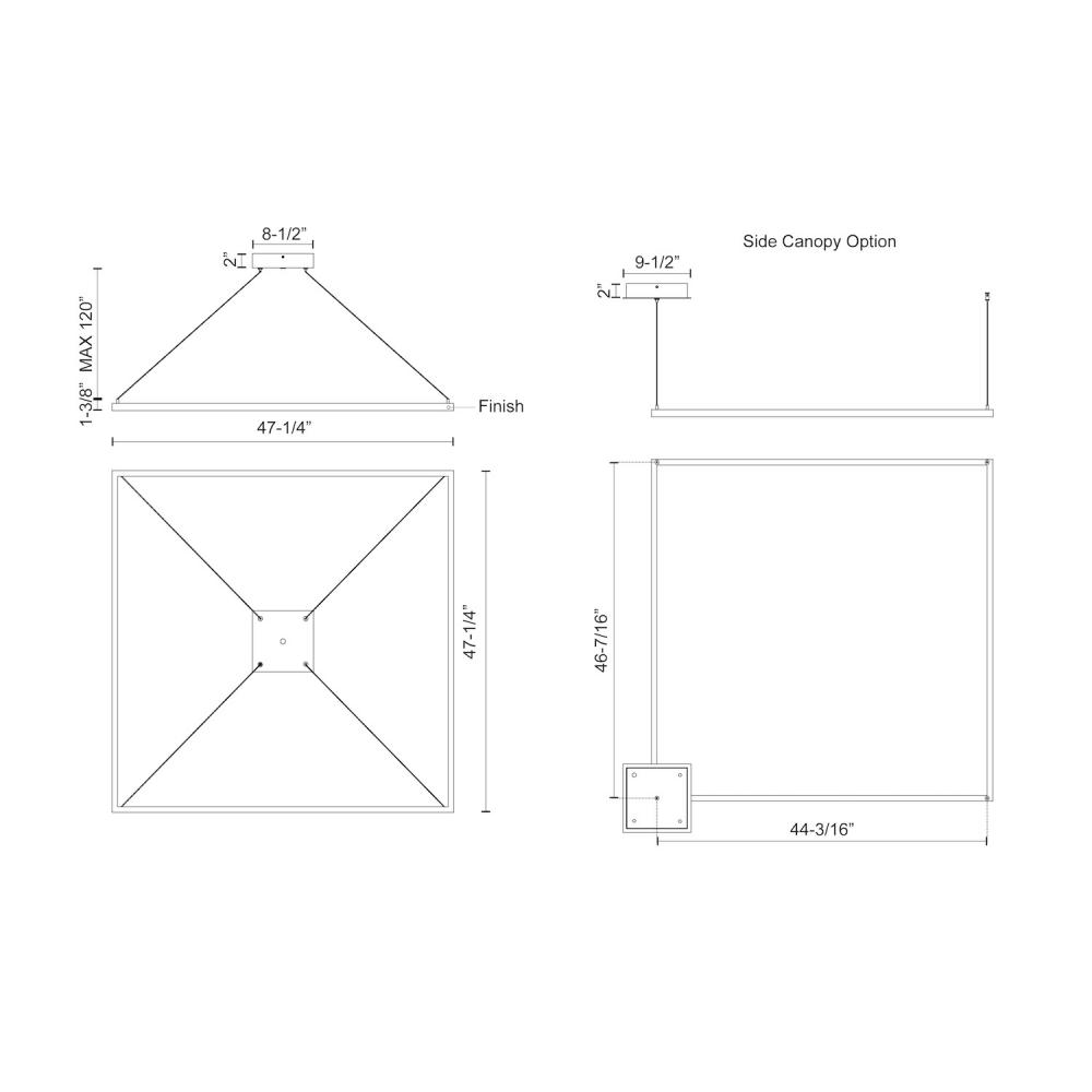 Extruded aluminum with rectangular profile. Flush silicone diffuser. Matte powder-coated finish. Down light. Duo canopy mounting style