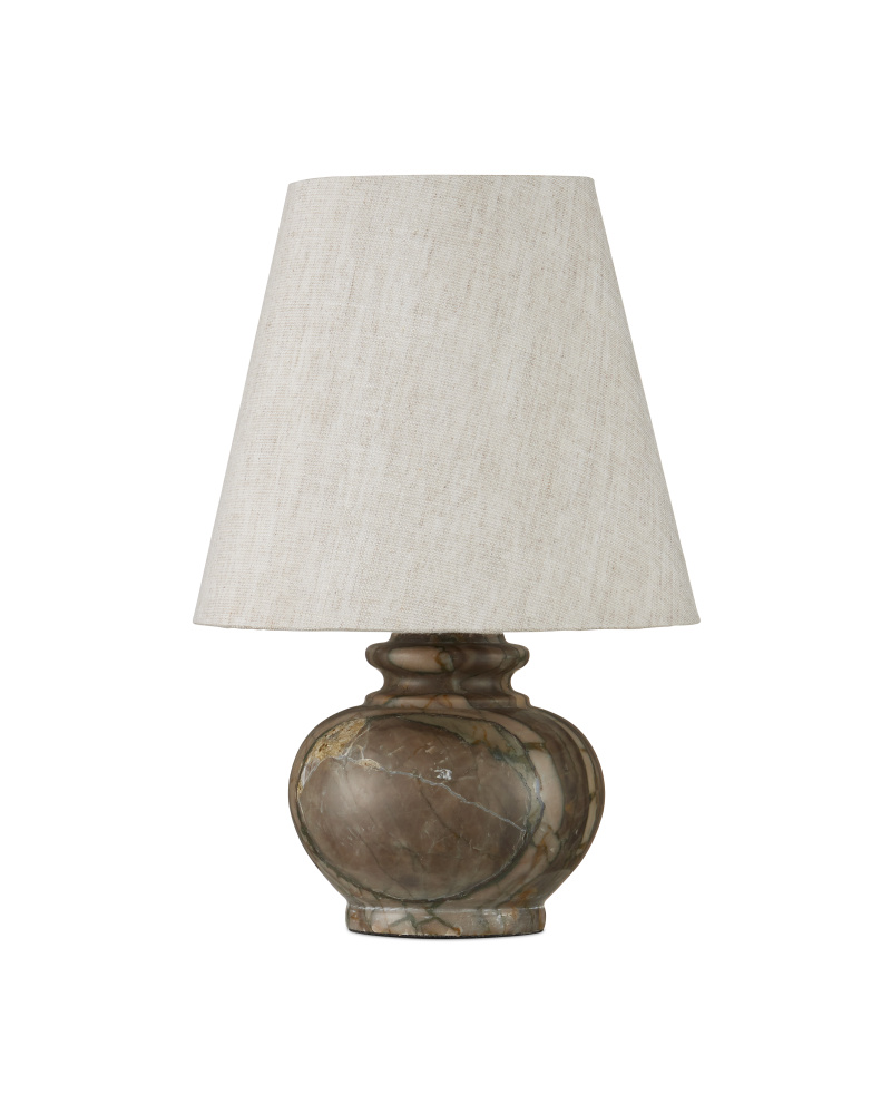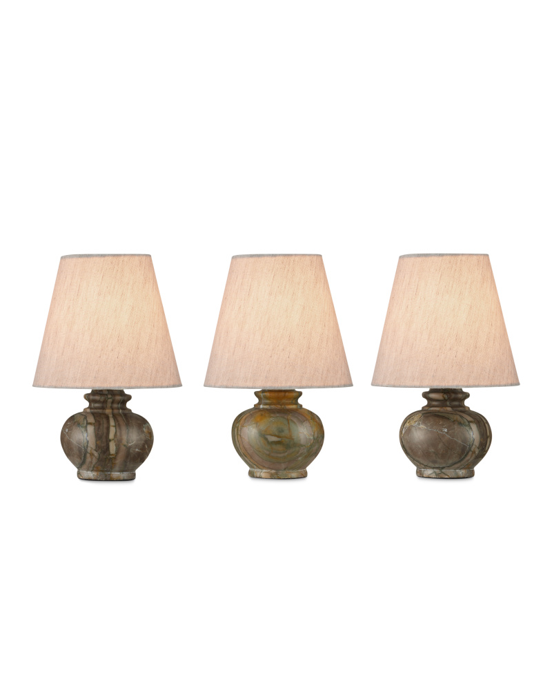 The Piccolo Pistachio Mini Table Lamp is a very petite lamp made of Pistachio Green marble that was modeled after a vintage design. At only 4.5 inches high to the bottom of the shade, it fits into most tight spots like bookcases, though the beauty of the natural material will make it a standout in more commanding decorative arrangements. Because the marble is a stone, no two lamps will be exactly alike. The Piccolo is fitted with an off-white linen shade.