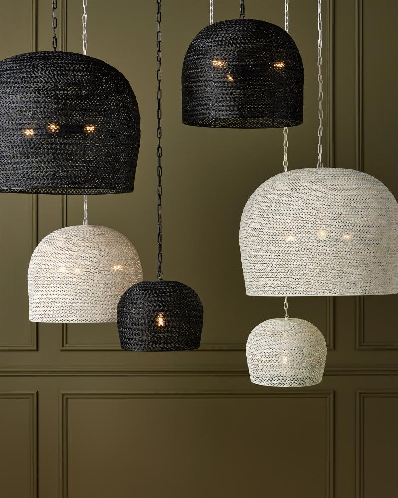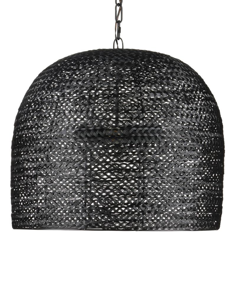 The Piero Medium Black Chandelier may appear to be woven from a natural plant material but it is made of iron in a satin black finish to make it an exemplar of the skills that our craftspeople bring to their work. When the black chandelier is illuminated, textural patterns will enliven surrounding surfaces; when it is not, the flowing weave will continue to be a textural accent in a space. Adjustable from 24.25" to 94" with use of included chain/rod kit/cable. If your space calls for a longer drop, additional chain/rods/cable is available for purchase.