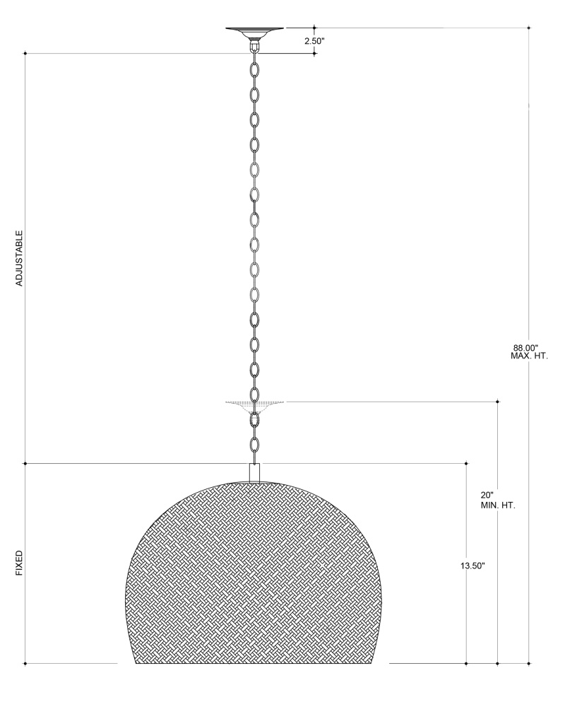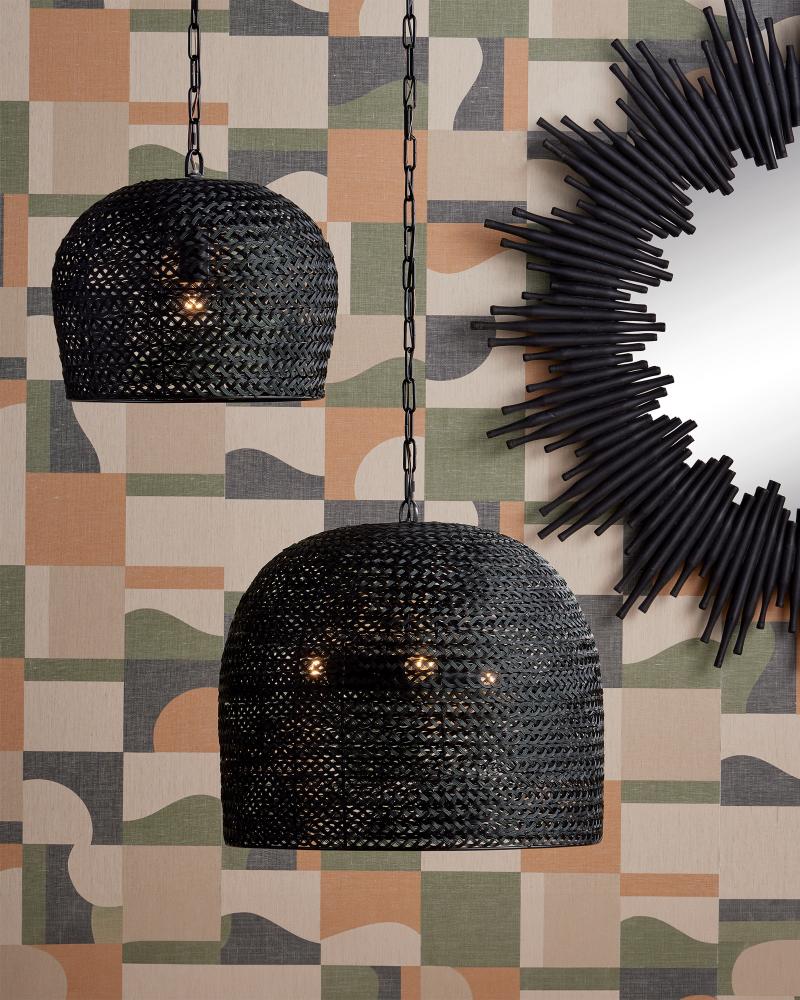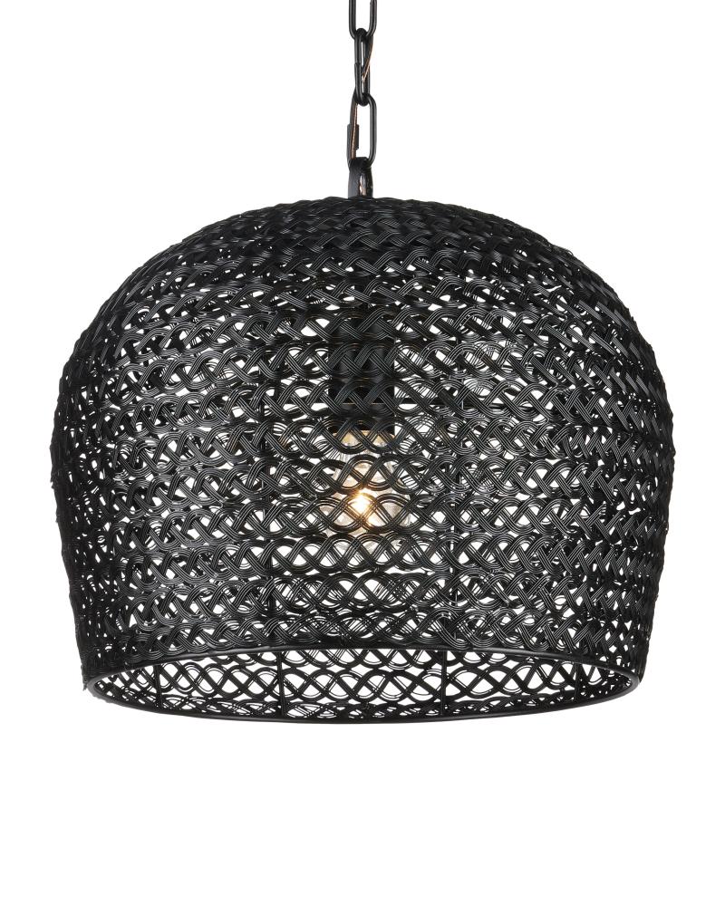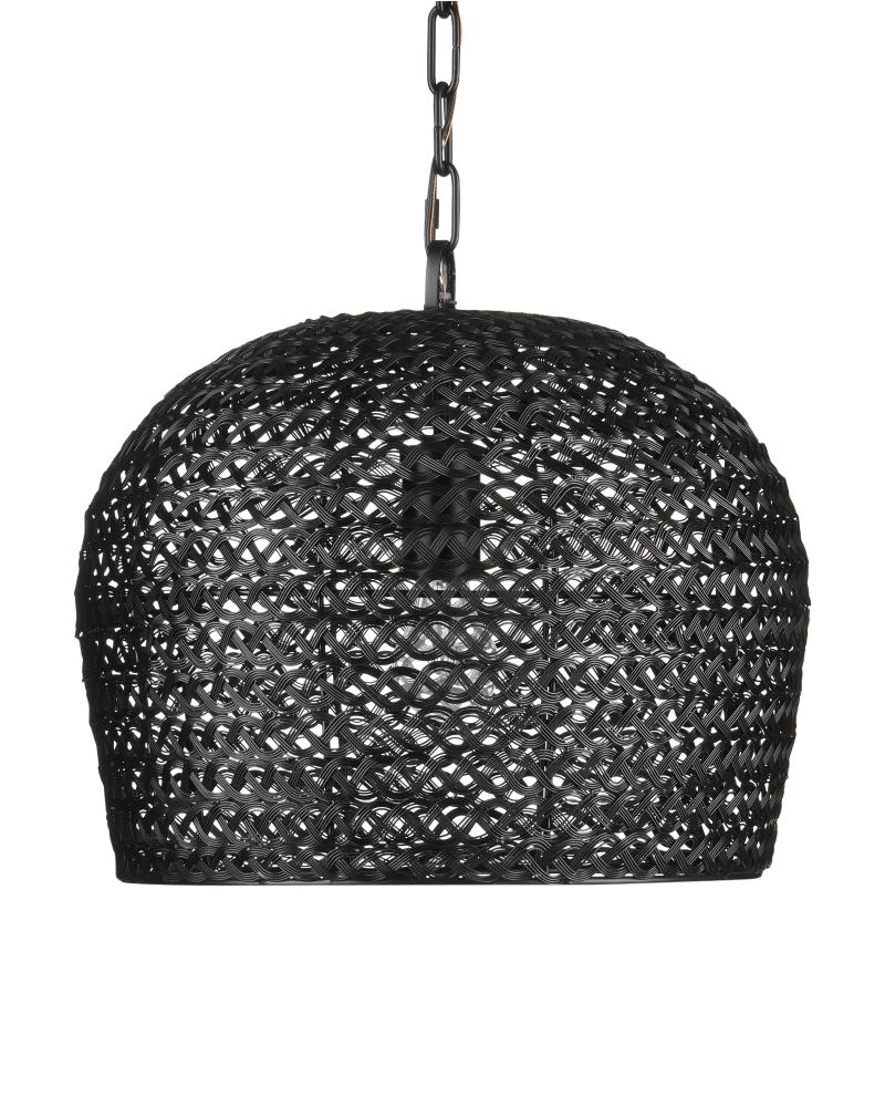 The Piero Black Pendant may appear to be woven from a natural plant material but it is made of iron in a satin black finish to make it an exemplar of the skills that our craftspeople bring to their work. When the black pendant is illuminated, textural patterns will enliven surrounding surfaces; when it is not, the flowing weave will continue to be a textural accent in a space. Adjustable from 20" to 88" with use of included chain/rod kit/cable. If your space calls for a longer drop, additional chain/rods/cable is available for purchase.