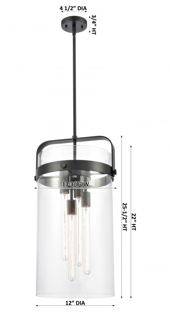 An elegant twist on industrial lighting, Pilaster boasts a metal frame with dramatic glass cylinders that are accentuated by machined metal fasteners. These fixtures are available with or without metal band detail in a complementary finish.