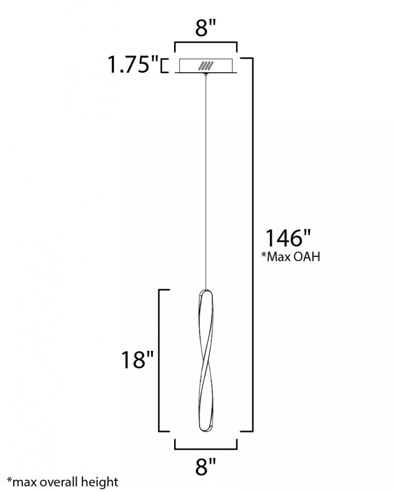 Twisted Black forms are illuminated on the edge with integrated LED to emphasize a spiraling effect. Available in pendant configurations, the collection is complemented by bath vanities in the same style. The vanity lights feature CCT Selectable light sour
