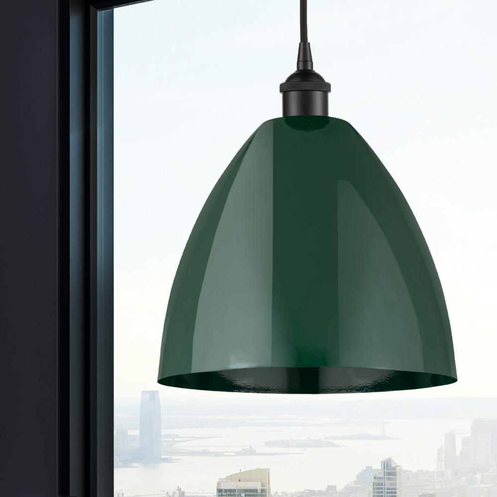Plymouth - 1 Light - 12 inch - Matte Black - Green Shade - Cord hung - Mini Pendant