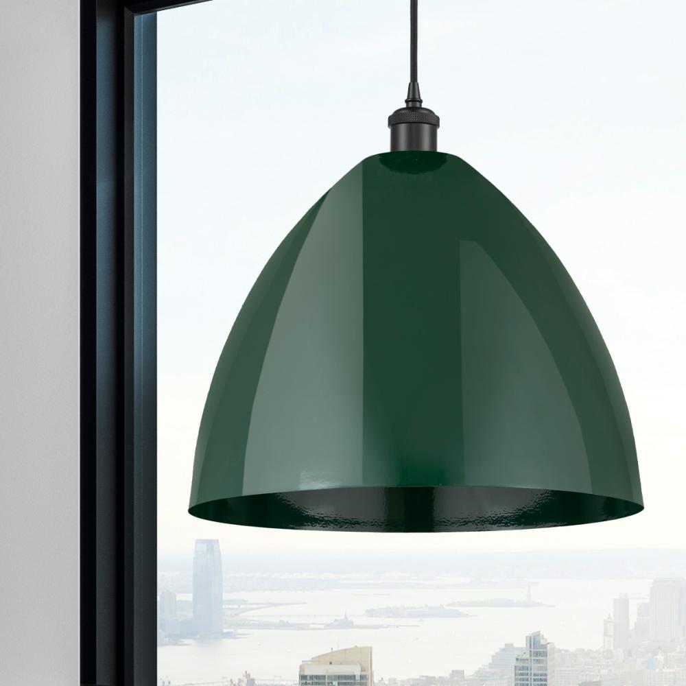 Plymouth - 1 Light - 16 inch - Matte Black - Green Shade - Cord hung - Mini Pendant