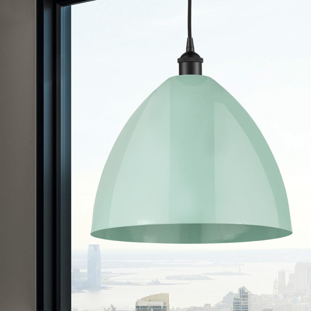 Plymouth - 1 Light - 16 inch - Matte Black - Seafoam Shade - Cord hung - Mini Pendant