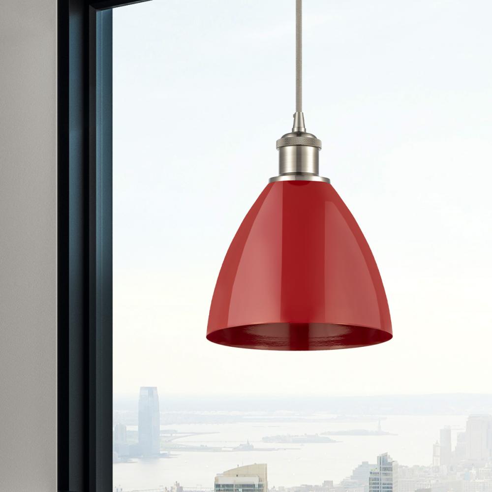 Plymouth - 1 Light - 8 inch - Brushed Satin Nickel - Red Shade - Cord hung - Mini Pendant