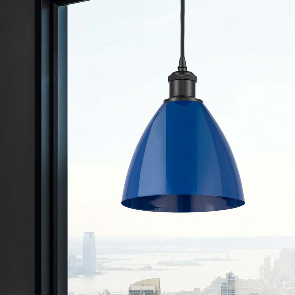 Plymouth - 1 Light - 8 inch - Matte Black - Blue Shade - Cord hung - Mini Pendant