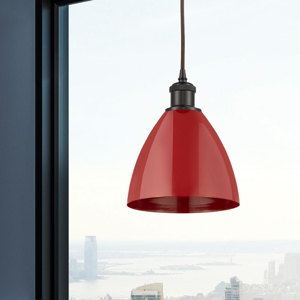 Plymouth - 1 Light - 8 inch - Oil Rubbed Bronze - Red Shade - Cord hung - Mini Pendant