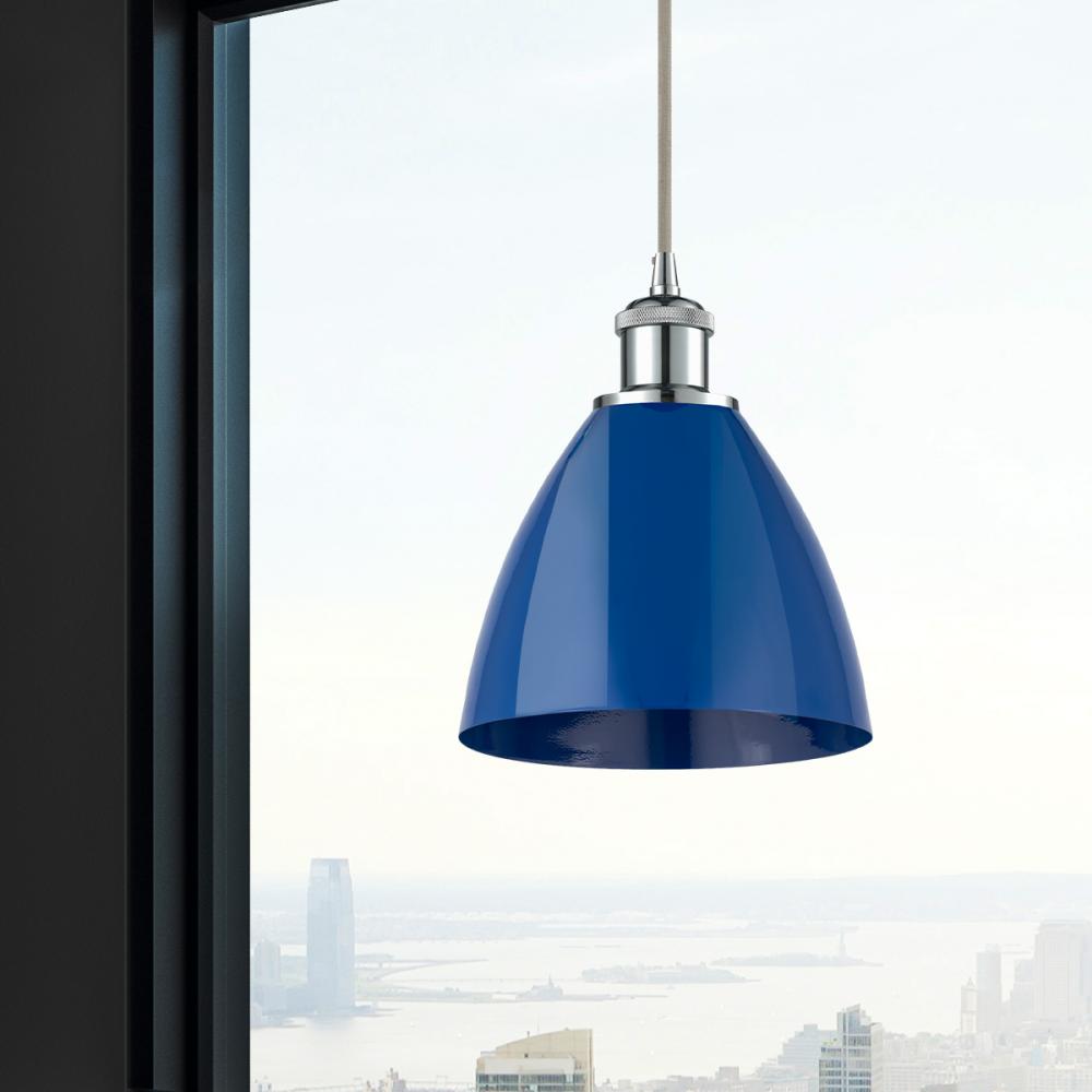 Plymouth - 1 Light - 8 inch - Polished Chrome - Blue Shade - Cord hung - Mini Pendant