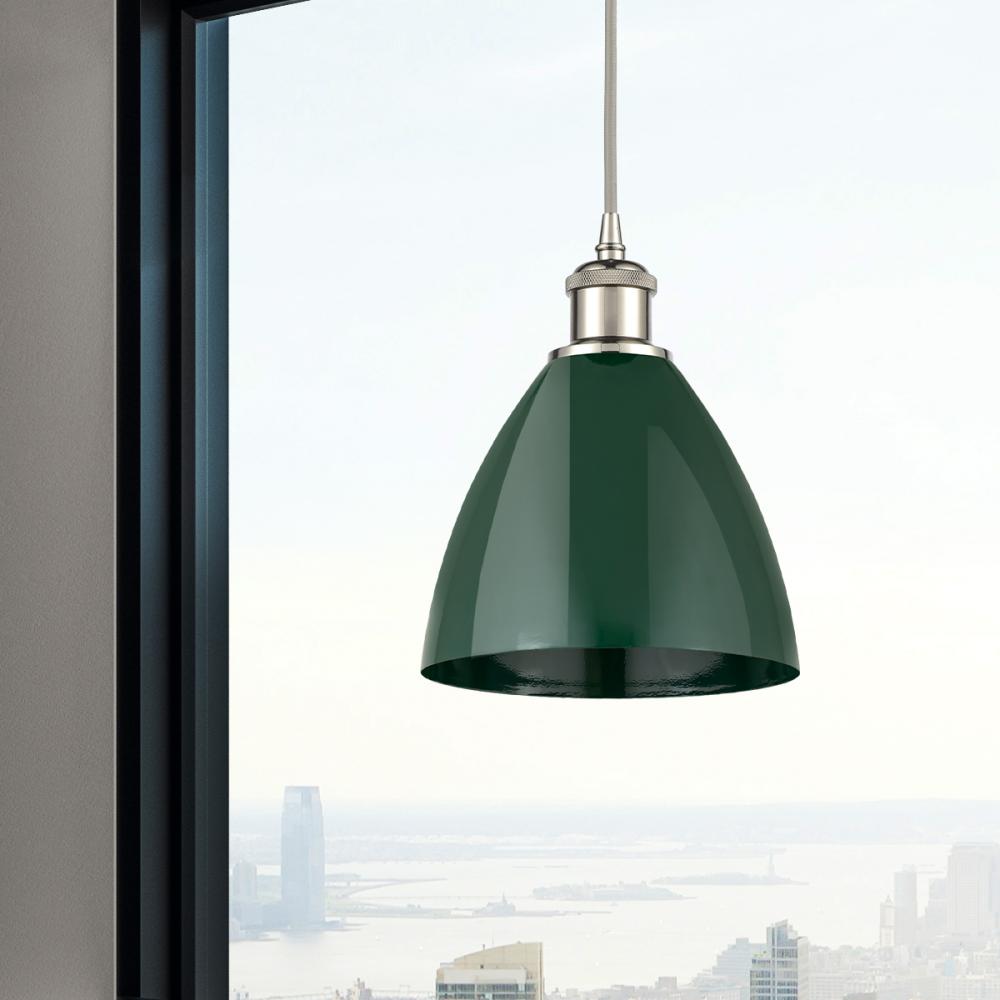 Plymouth - 1 Light - 8 inch - Polished Nickel - Green Shade - Cord hung - Mini Pendant