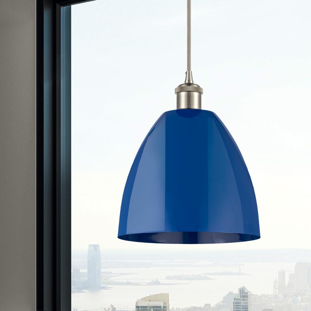 Plymouth - 1 Light - 9 inch - Brushed Satin Nickel - Blue Shade - Cord hung - Mini Pendant