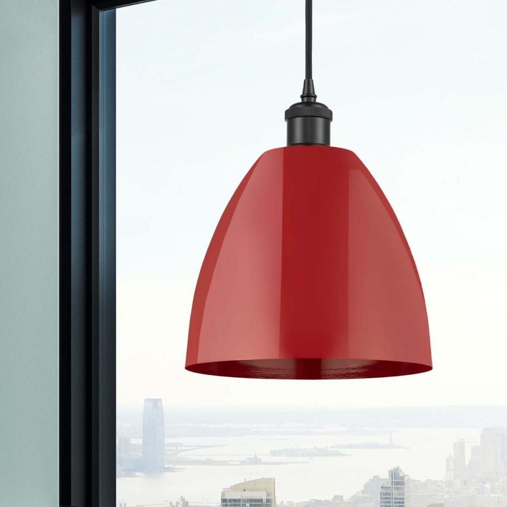 Plymouth - 1 Light - 9 inch - Matte Black - Red Shade - Cord hung - Mini Pendant