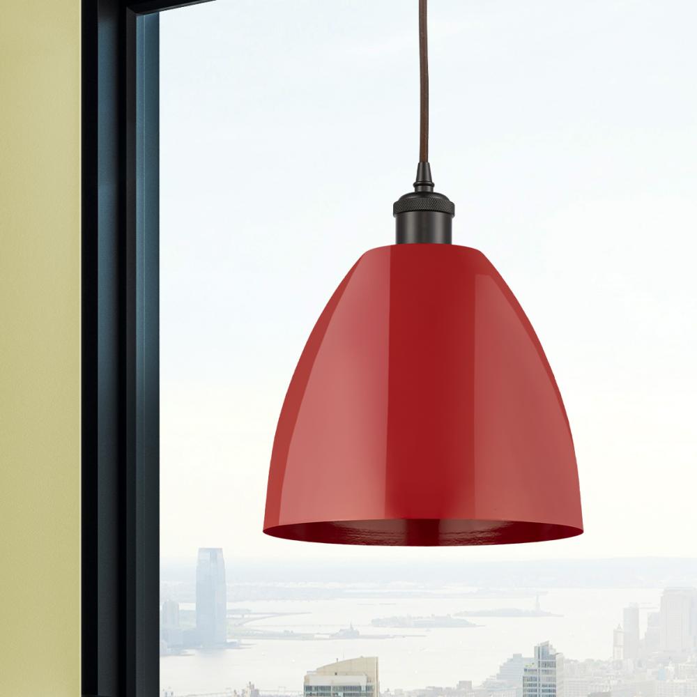 Plymouth - 1 Light - 9 inch - Oil Rubbed Bronze - Red Shade - Cord hung - Mini Pendant