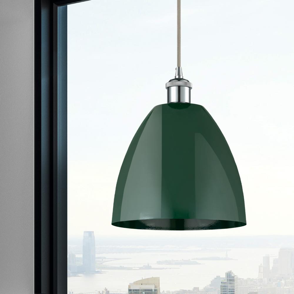 Plymouth - 1 Light - 9 inch - Polished Chrome - Green Shade - Cord hung - Mini Pendant