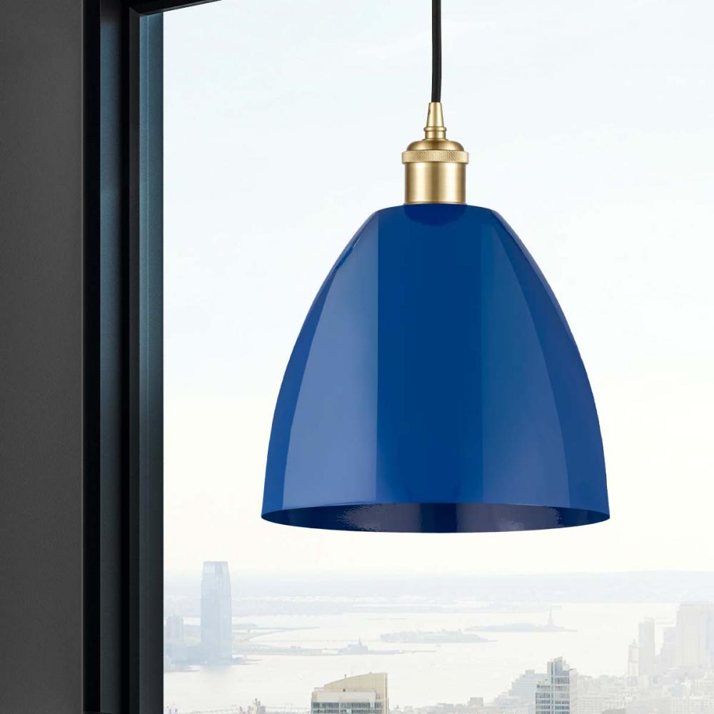 Plymouth - 1 Light - 9 inch - Satin Gold - Blue Shade - Cord hung - Mini Pendant