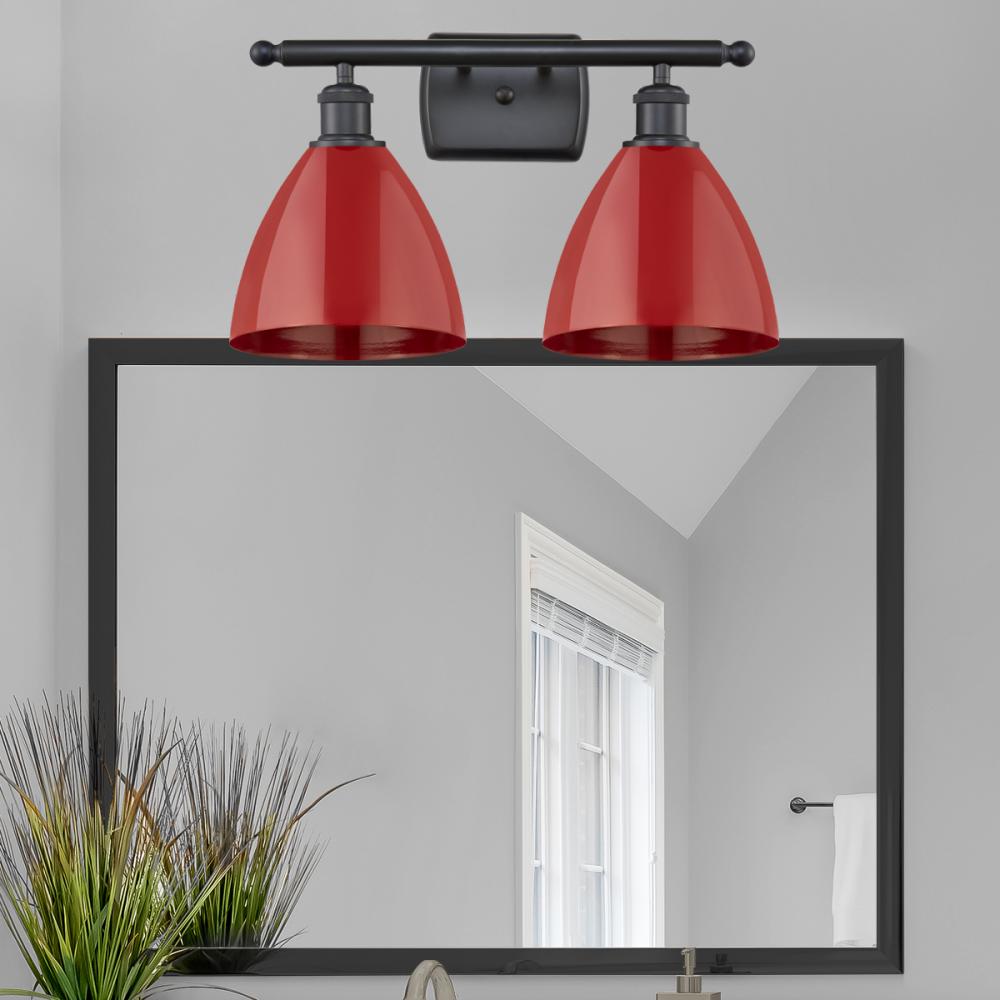 Plymouth - 2 Light - 18 inch - Matte Black - Red Shade - Bath Vanity Light