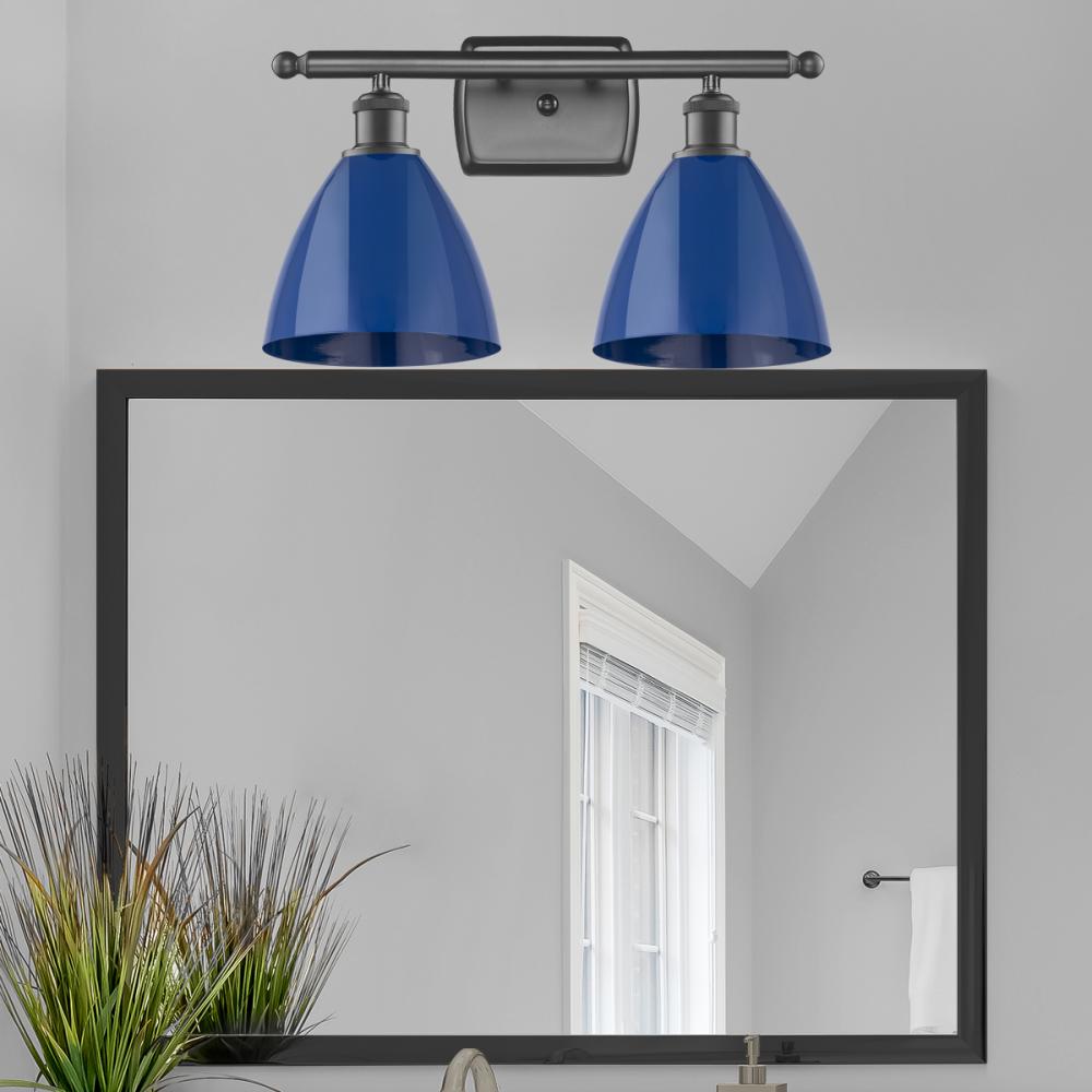 Plymouth - 2 Light - 18 inch - Oil Rubbed Bronze - Blue Shade - Bath Vanity Light
