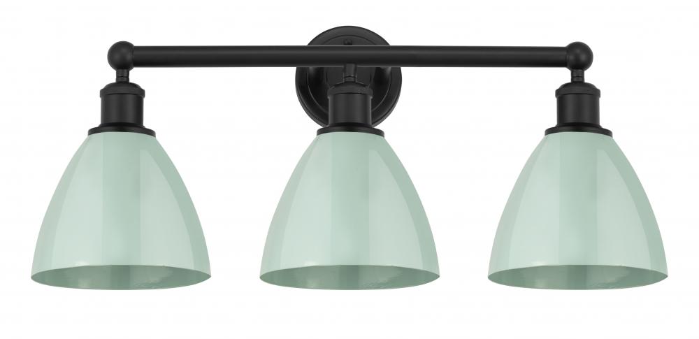 Plymouth - 3 Light - 26 inch - Matte Black - Seafoam Shade - Bath Vanity Light