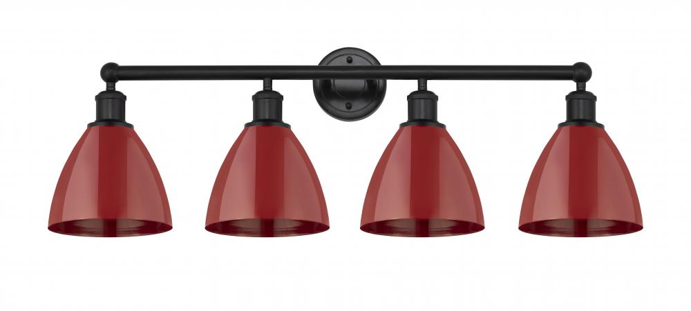 Plymouth - 4 Light - 35 inch - Matte Black - Red Shade - Bath Vanity Light