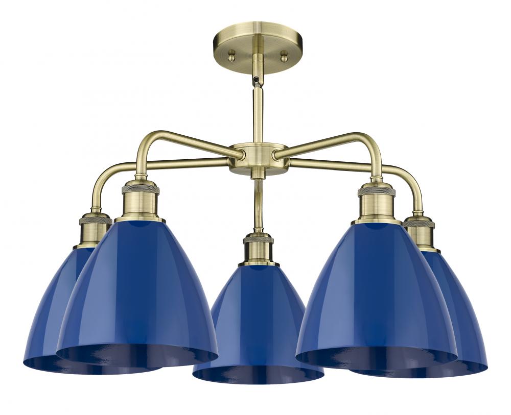 Plymouth - 5 Light - 26 inch - Antique Brass - Blue Shade - Chandelier