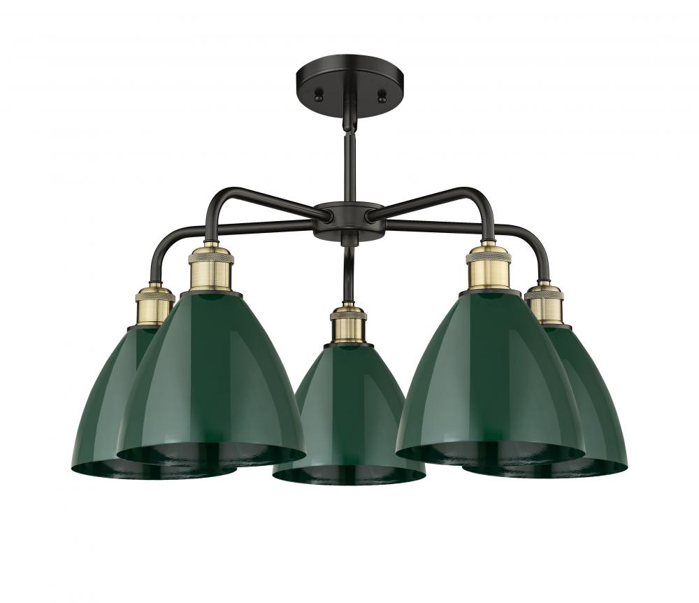 Plymouth - 5 Light - 26 inch - Black Antique Brass - Green Shade - Chandelier