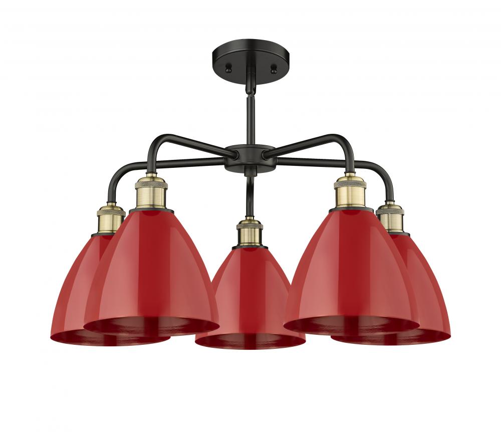 Plymouth - 5 Light - 26 inch - Black Antique Brass - Red Shade - Chandelier