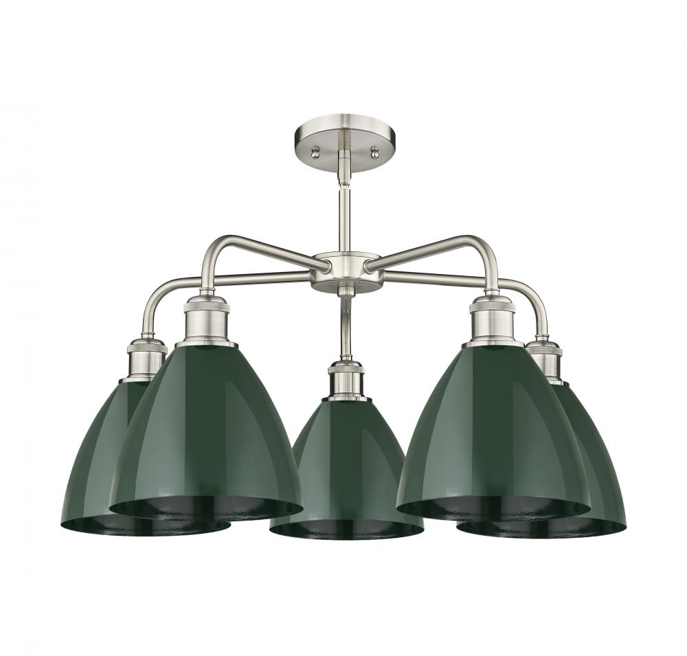 Plymouth - 5 Light - 26 inch - Satin Nickel - Green Shade - Chandelier