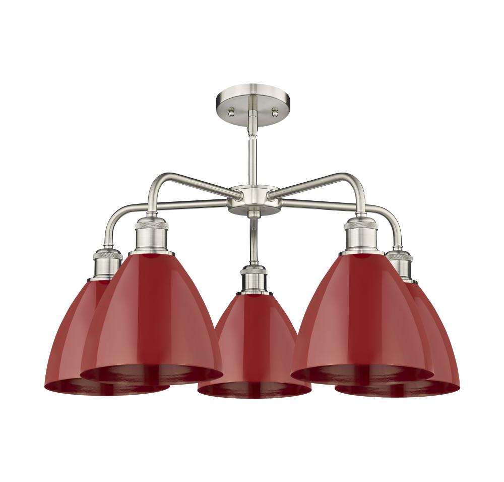 Plymouth - 5 Light - 26 inch - Satin Nickel - Red Shade - Chandelier