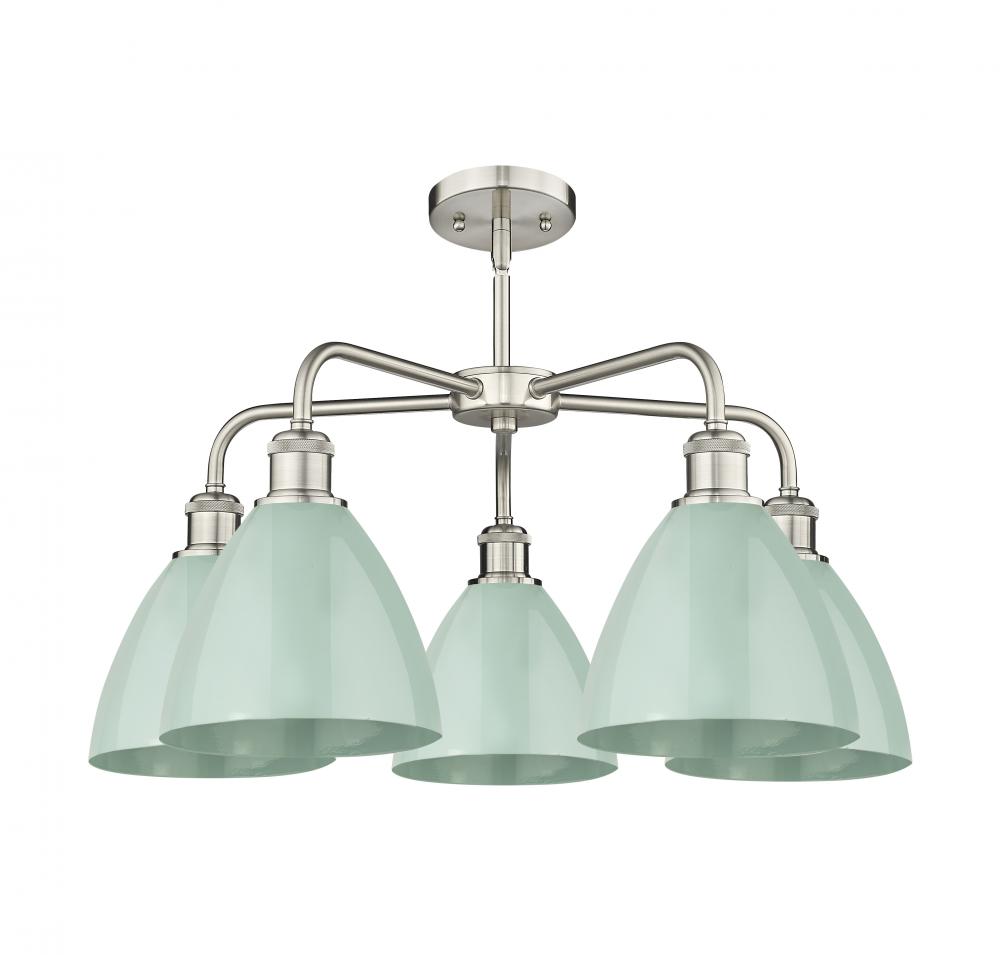 Plymouth - 5 Light - 26 inch - Satin Nickel - Seafoam Shade - Chandelier