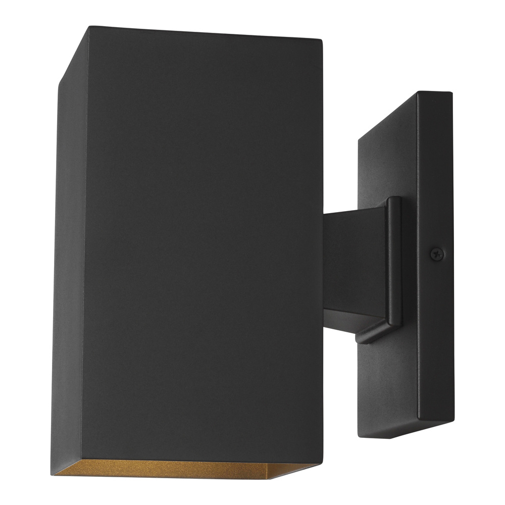 Contemporary outdoor fixture with industrial-style aluminum base is perfect for exterior wall applications such as garages, porches, patios or gazebos