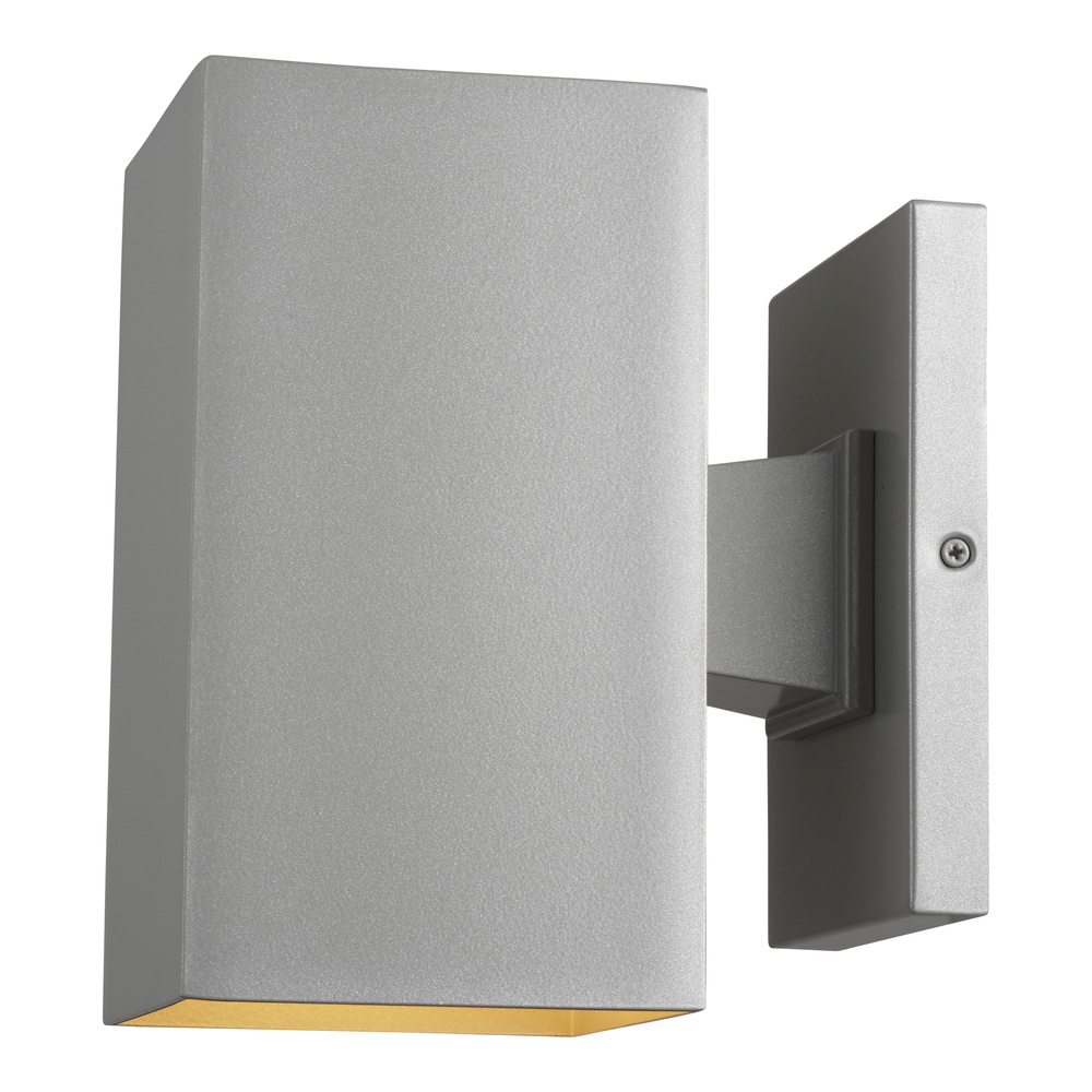Contemporary outdoor fixture with industrial-style aluminum base is perfect for exterior wall applications such as garages, porches, patios or gazebos
